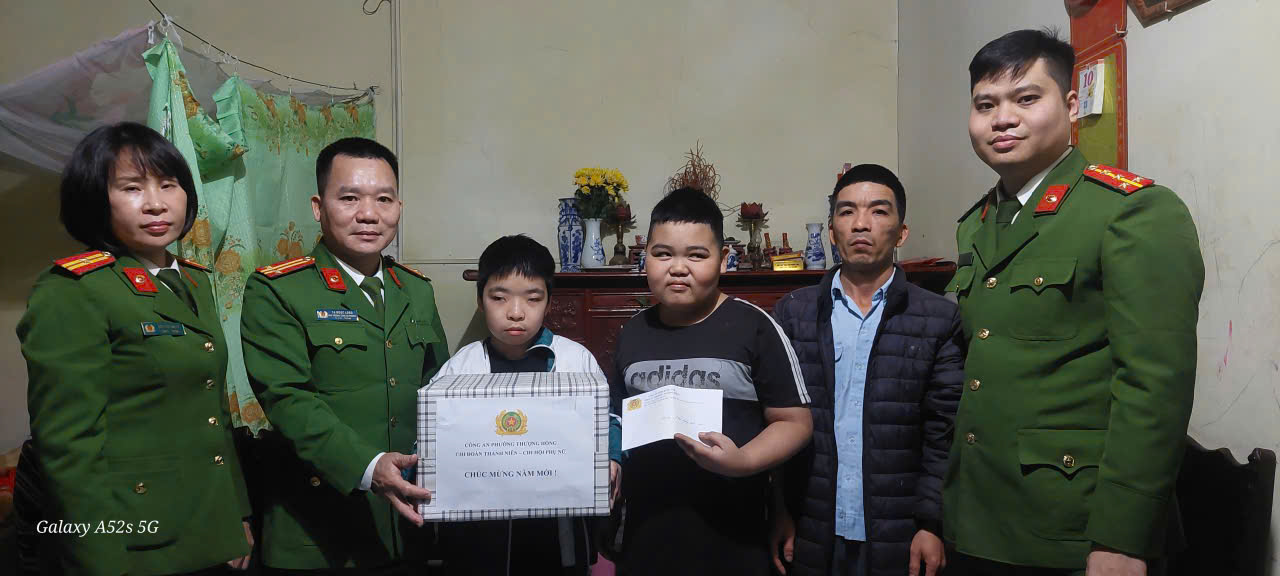 Nhân dịp Tết Nguyên đán Bính Ngọ năm 2026, nhằm phát huy tinh thần tương thân, tương ái, lá lành đùm lá rách, Chi đoàn thanh niên và Chi hội phụ nữ Công an phường Thượng Hồng, tỉnh Hưng Yên đã tham mưu chỉ huy Công an phường tổ chức các hoạt động thăm hỏi, tặng quà tết đối với gia đình các em có hoàn cảnh khó khăn trên địa bàn.