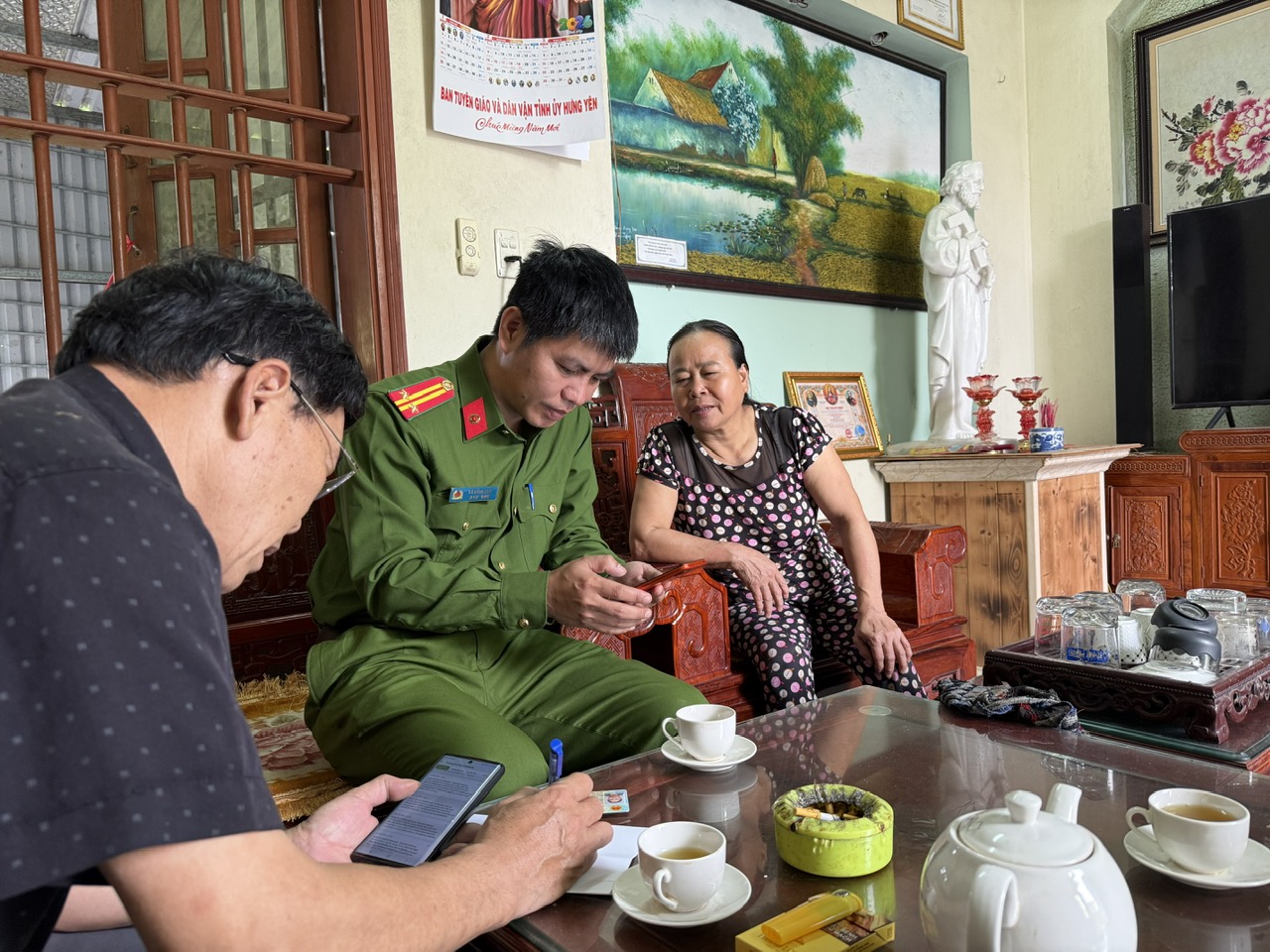 Cán bộ Công an phường hướng dẫn tích hợp cho người dân tại nhà