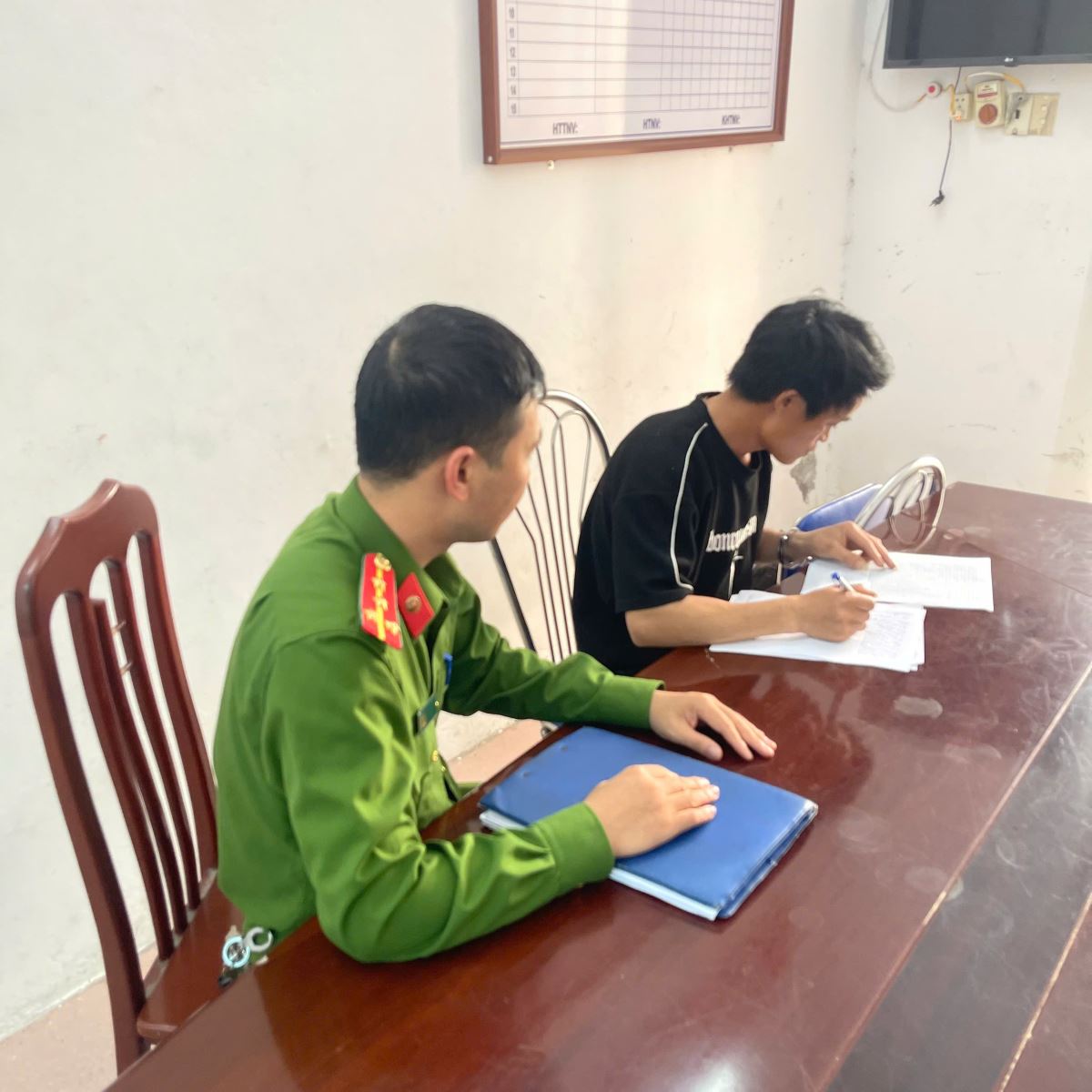 Cán bộ Công an phường làm việc với đối tượng Vì Văn Hảo