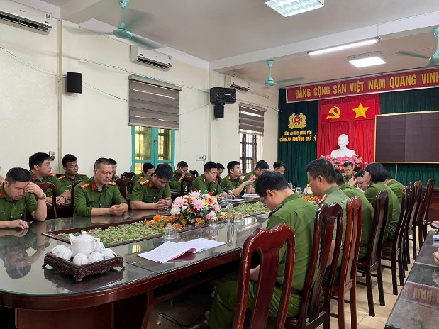 Với mục đích tuyên truyền giúp cán bộ, chiến sĩ nhận thức sâu sắc hơn về truyền thống vẻ vang của 03 lực lượng Tham mưu, Cảnh sát hình sự, Cảnh sát Quản lý hành chính về trật tự xã hội nói riêng và lực lượng Công an nhân dân nói chung; bên cạnh công tác tuyên truyền trực quan, tại buổi sinh hoạt, đồng chí Thượng tá Nguyễn Hải Triều – Trưởng Công an phường tôn vinh các thế hệ CBCS qua các thời kỳ đã cống hiến, hy sinh vì sự nghiệp xây dựng, bảo vệ Tổ quốc và xây dựng lực lượng Công an nhân dân, ôn lại truyền thống vẻ vang, điểm lại những kết quả Công an phường đã đạt được sau khi thành lập và đi vào hoạt động; đồng thời phát động chỉ huy, cán bộ, chiến sĩ Công an phường tích cực tuyên truyền, hưởng ứng tham gia Cuộc thi sáng tạo video clip “Tổ quốc bình yên”, triển khai Nghị quyết số 03 ngày 06/4/2026 của Đảng ủy Công an Trung ương về xây dựng Công an xã, phường, đặc khu vững mạnh, hiện đại, bám cơ sở đáp ứng yêu cầu, nhiệm vụ trong tình hình mới. Cũng tại buổi sinh hoạt, đồng chí Trưởng Công an phường đã biểu dương các cá nhân tích cực tham gia xác minh, làm rõ vụ việc có dấu hiệu giết người, gây rối trật tự công cộng xảy ra tại đường Võ Nguyên Giáp, phường Trà Lý ngày 06/4/2026, đồng thời chỉ đạo Tổ Tổng hợp Công an phường hoàn thiện hồ sơ đề nghị Ủy ban nhân dân phường Trà Lý khen thưởng đột xuất cho các cá nhân có thành tích xuất sắc trong công tác giải quyết vụ việc trên.