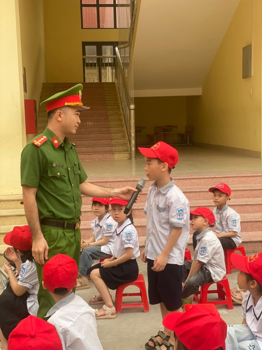 Trong buổi tuyên truyền, cán bộ Công an phường đã tổ chức phần giao lưu trực tiếp với các em học sinh thông qua hình thức đặt câu hỏi tình huống. Các câu hỏi xoay quanh những vấn đề gần gũi trong đời sống học đường và môi trường mạng như: cách nhận biết tin nhắn lừa đảo, xử lý khi bị người lạ kết bạn, cách ứng xử khi xảy ra mâu thuẫn với bạn bè, hoặc khi bị bắt nạt, xúc phạm trên mạng xã hội. Không khí buổi giao lưu diễn ra sôi nổi, thu hút sự tham gia tích cực của các em học sinh. Nhiều em mạnh dạn đưa ra ý kiến, chia sẻ trải nghiệm thực tế và trả lời các câu hỏi tình huống do cán bộ Công an đặt ra. Thông qua phần giao lưu, các em học sinh được trang bị thêm kiến thức, kỹ năng nhận diện nguy cơ, biết cách xử lý phù hợp khi gặp tình huống phát sinh, đồng thời nâng cao ý thức tự bảo vệ bản thân trong môi trường học đường và trên không gian mạng. Bên cạnh việc cung cấp kiến thức pháp luật, lực lượng Công an phường cũng hướng dẫn các em học sinh các kỹ năng cần thiết để tự bảo vệ bản thân, như: không chia sẻ thông tin cá nhân, mật khẩu, mã OTP; không truy cập các đường link lạ; tăng cường kiểm soát nội dung đăng tải trên mạng xã hội; đồng thời khi gặp tình huống nguy hiểm hoặc có dấu hiệu bị bạo lực học đường, các em cần giữ bình tĩnh, kịp thời báo cho thầy cô giáo, cha mẹ hoặc người lớn đáng tin cậy để được hỗ trợ, bảo vệ.