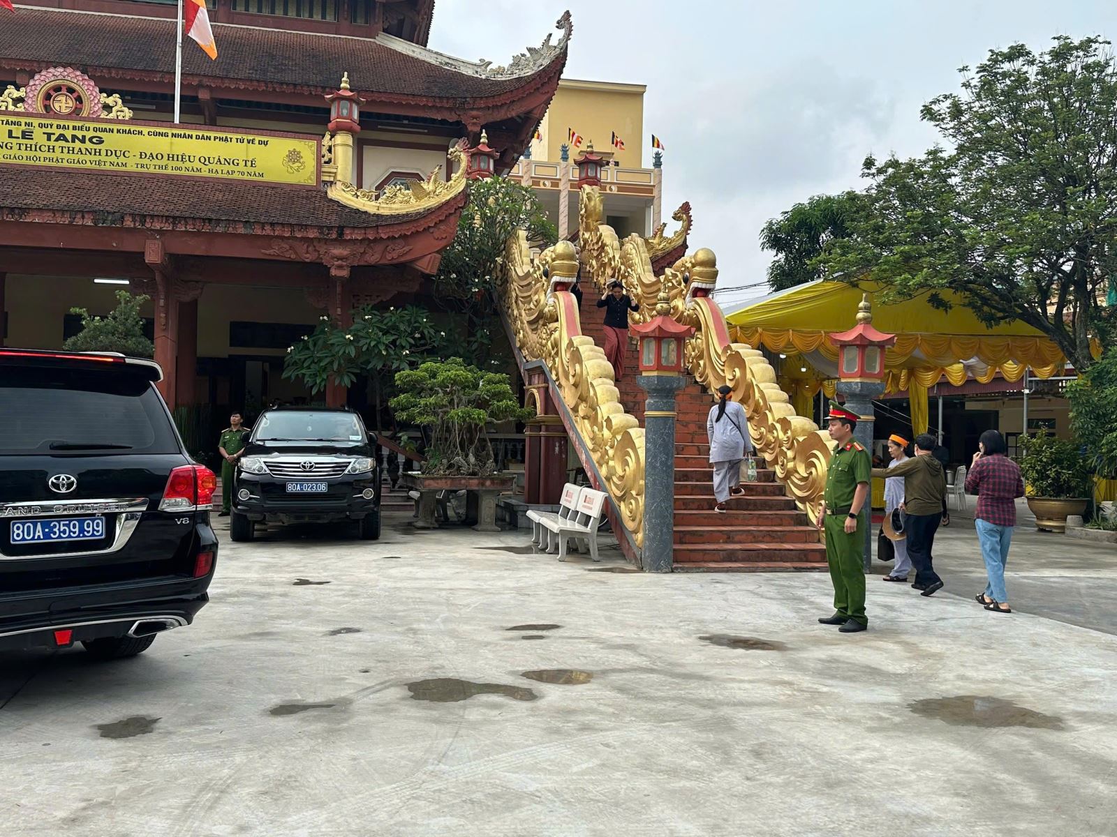 Công an phường Trần Lãm triển khai lực lượng tại các khu vực trọng yếu bảo đảm an ninh, an toàn cho Lễ tang tại chùa Thánh Long