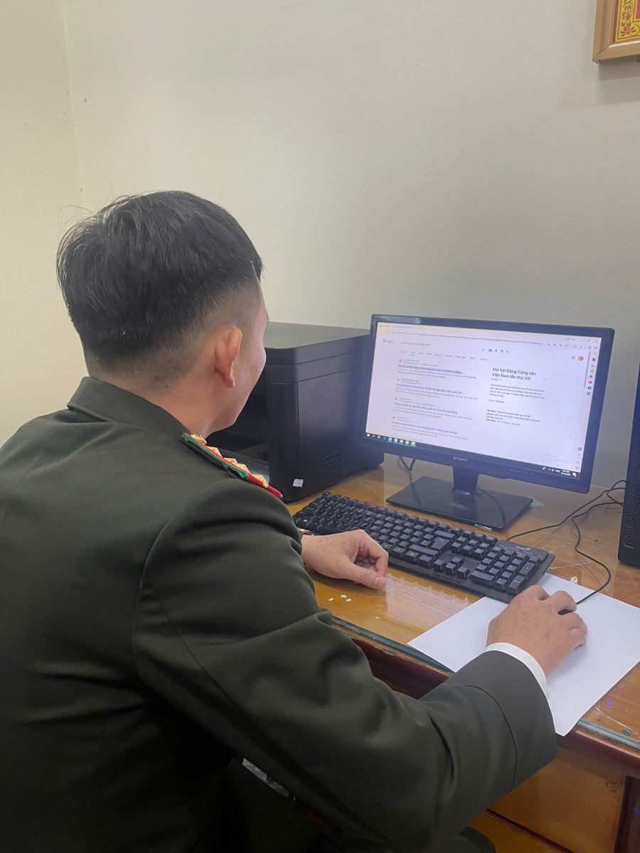 Cán bộ Công an phường Trần Lãm tăng cường rà soát, kiểm tra thông tin trên không gian mạng