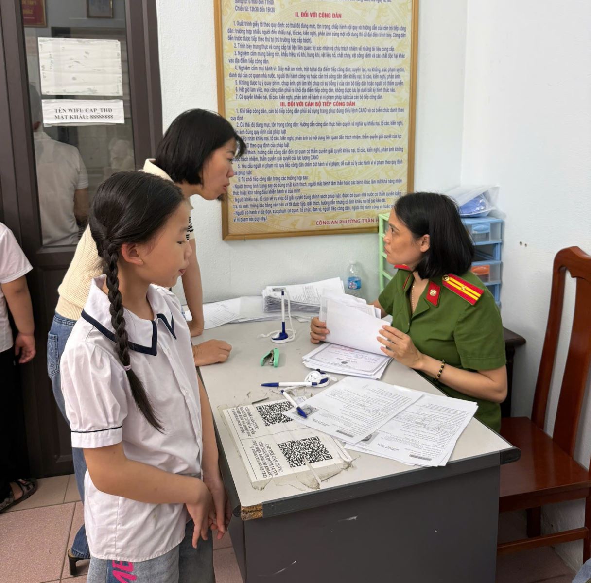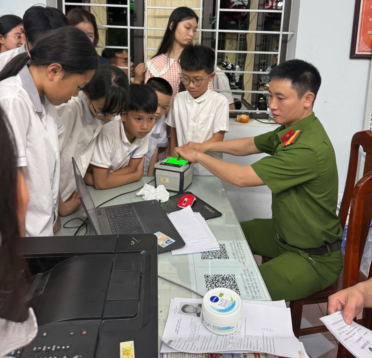 Do Công an phường Vũ Phúc chưa được trang cấp thiết bị để cấp căn cước cho công dân, Công an phường Vũ Phúc đã chủ động phối hợp với Công an phường Trần Hưng Đạo để thực hiện nhiệm vụ này. Để tạo điều kiện thuận lợi cho học sinh và phụ huynh, Công an phường phân công cán bộ thực hiện nhiệm vụ liên tục, làm việc ngoài giờ hành chính, kể cả ngày nghỉ từ 07h00 đến 23h00 hàng ngày (07h00 đến 11h30; 13h30 đến 17h30; 17h30 đến 23h00). Cán bộ, chiến sĩ được phân công cụ thể theo từng khâu, từ kiểm tra thông tin, đối chiếu giấy tờ đến thu nhận sinh trắc học và chụp ảnh chân dung, đảm bảo quy trình được thực hiện nhanh gọn, chính xác; góp phần tạo sự hài lòng, tin tưởng trong Nhân dân.