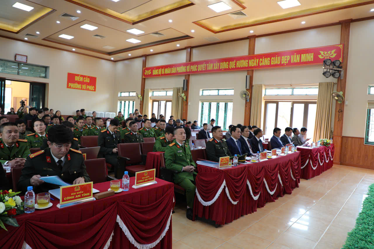 Đến dự và chỉ đạo Hội nghị có đồng chí Đại tá Vũ Mạnh Hà, Phó Giám đốc Công an tỉnh; đồng chí Phạm Cao Quân, Bí thư Đảng ủy, Chủ tịch HĐND phường; đồng chí Trần Ngọc Phú, Phó Bí thư thường trực Đảng uỷ phường; đồng chí Vũ Đức Tuấn, Phó Bí thư Đảng ủy, Chủ tịch UBND phường. Tham dự hội nghị còn có các đồng chí đại diện lãnh đạo các phòng nghiệp vụ của Công an tỉnh, Lãnh đạo Đảng uỷ, UBND phường Vũ Phúc, tổ trưởng các tổ dân phố, lực lượng bảo vệ an ninh trật tự ở cơ sở cùng tập thể Lãnh đạo, cán bộ chiến sĩ Công an phường.