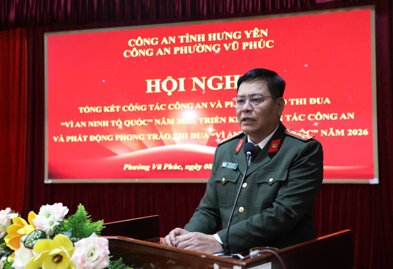 Phát biểu chỉ đạo tại hội nghị, đồng chí Đại tá Vũ Mạnh Hà, Phó Giám đốc Công an tỉnh, đồng chí Phạm Cao Quân, Bí thư Đảng ủy phường đã ghi nhận, biểu dương những kết quả mà Công an phường Vũ Phúc đã đạt được năm 2025, Công an phường đã thực hiện xuất sắc nhiệm vụ đảm bảo an ninh chính trị, trật tự an toàn xã hội trên địa bàn phường.