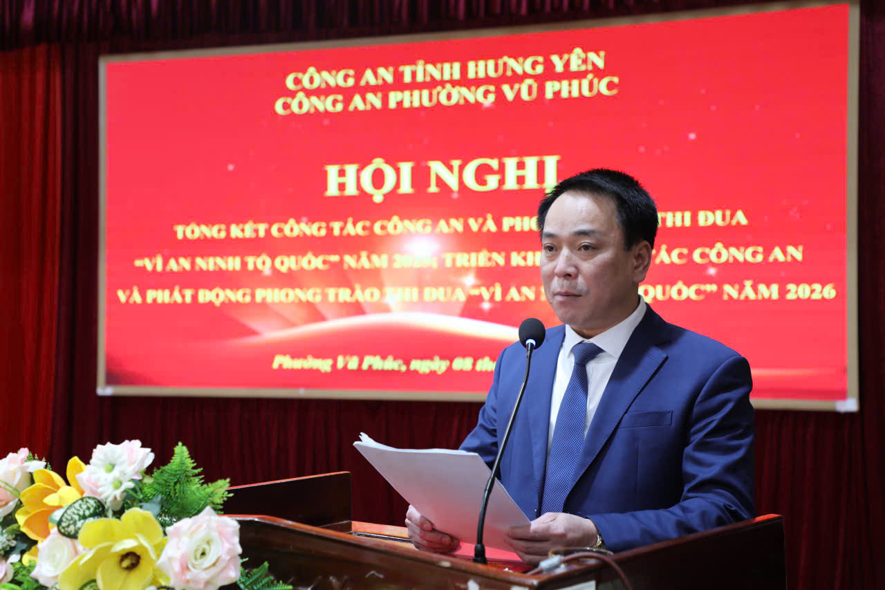 Năm 2026 là năm diễn ra nhiều sự kiện chính trị, văn hóa, xã hội quan trọng của đất nước, của tỉnh và địa phương, các đồng chí yêu cầu Công an phường Vũ Phúc tiếp tục phát huy những kết quả đã đạt được trong năm 2025 đồng thời tập trung đánh giá, dự báo đúng tình hình, không để bị động, bất ngờ, không để hình thành “điểm nóng” về an ninh, trật tự; tham mưu huy động sức mạnh tổng hợp của hệ thống chính trị và toàn dân trong công tác phòng chống tội phạm, kéo giảm bền vững 10% tội phạm về trật tự xã hội; phấn đấu sớm đạt tiêu chí “Phường không ma túy” giai đoạn 2025-2030; tăng cường ứng dụng khoa học, công nghệ vào các mặt công tác cải cách hành chính; nâng cao năng lực lãnh đạo, sức chiến đấu của Đảng bộ Công an phường và các chi bộ trực thuộc, xây dựng Đảng bộ Công an phường thực sự trong sạch, vững mạnh./.