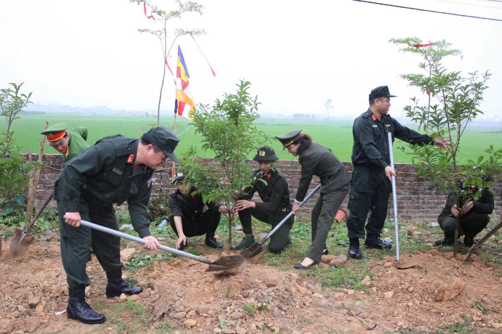 Đoàn công tác Công an tỉnh do phòng Tổ chức cán bộ đại diện chụp ảnh lưu niệm và trồng cây tại Trung đoàn CSCĐ Thủ đô