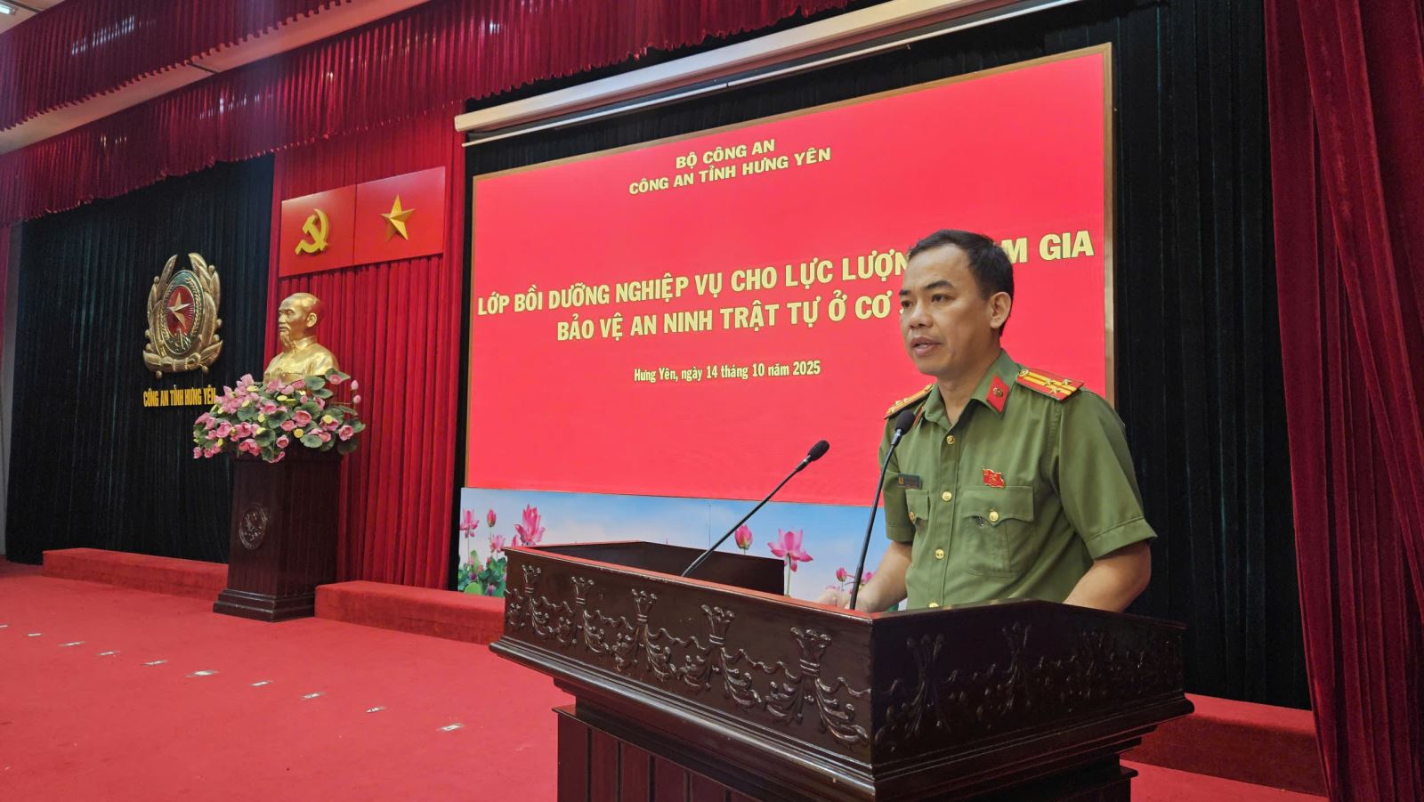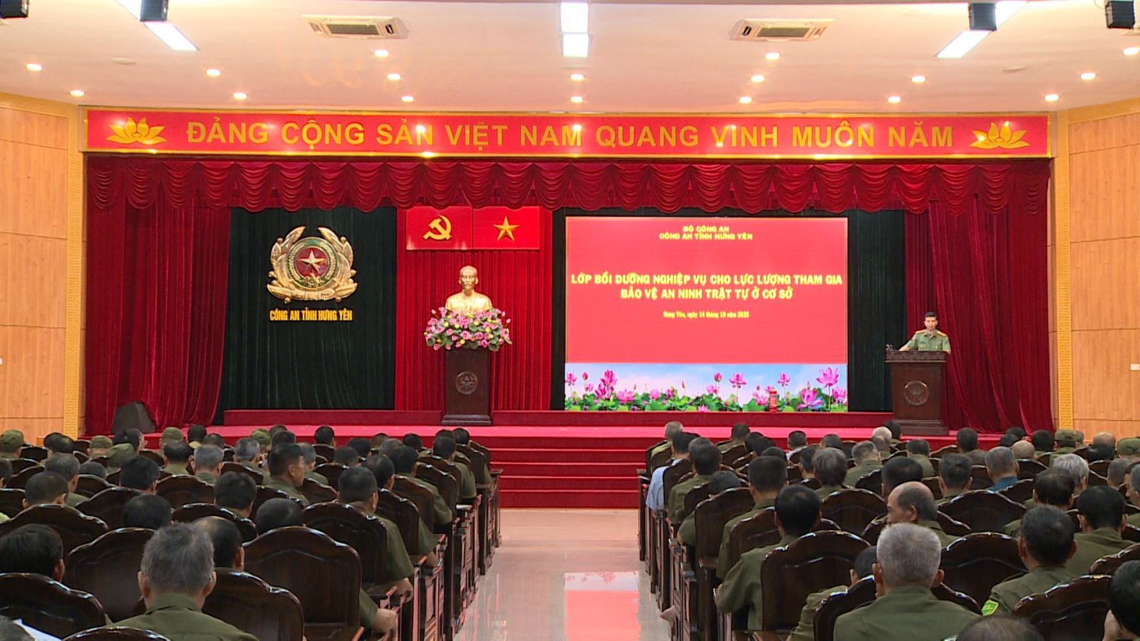 Sáng ngày 14/10/2025, Công an tỉnh Hưng Yên mở lớp bồi dưỡng nghiệp vụ cho lực lượng tham gia bảo vệ an ninh trật tự ở cơ sở thuộc các phường Thái Bình, Trần Lãm, Trần Hưng Đạo, Trà Lý, Vũ Phúc và các xã Vũ Thư, Thư Trì, Tân Thuận, Thư Vũ, Vũ Tiên, Vạn Xuân.