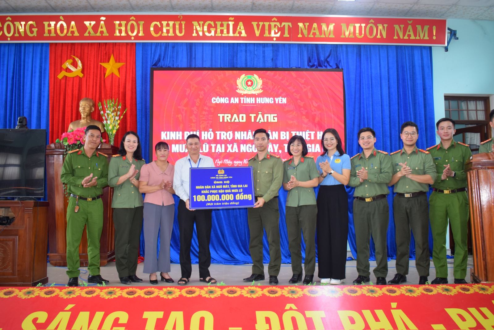 Đoàn công tác Công an tỉnh Hưng Yên trao tiền hỗ trợ các địa phương khắc phục hậu quả mưa lũ