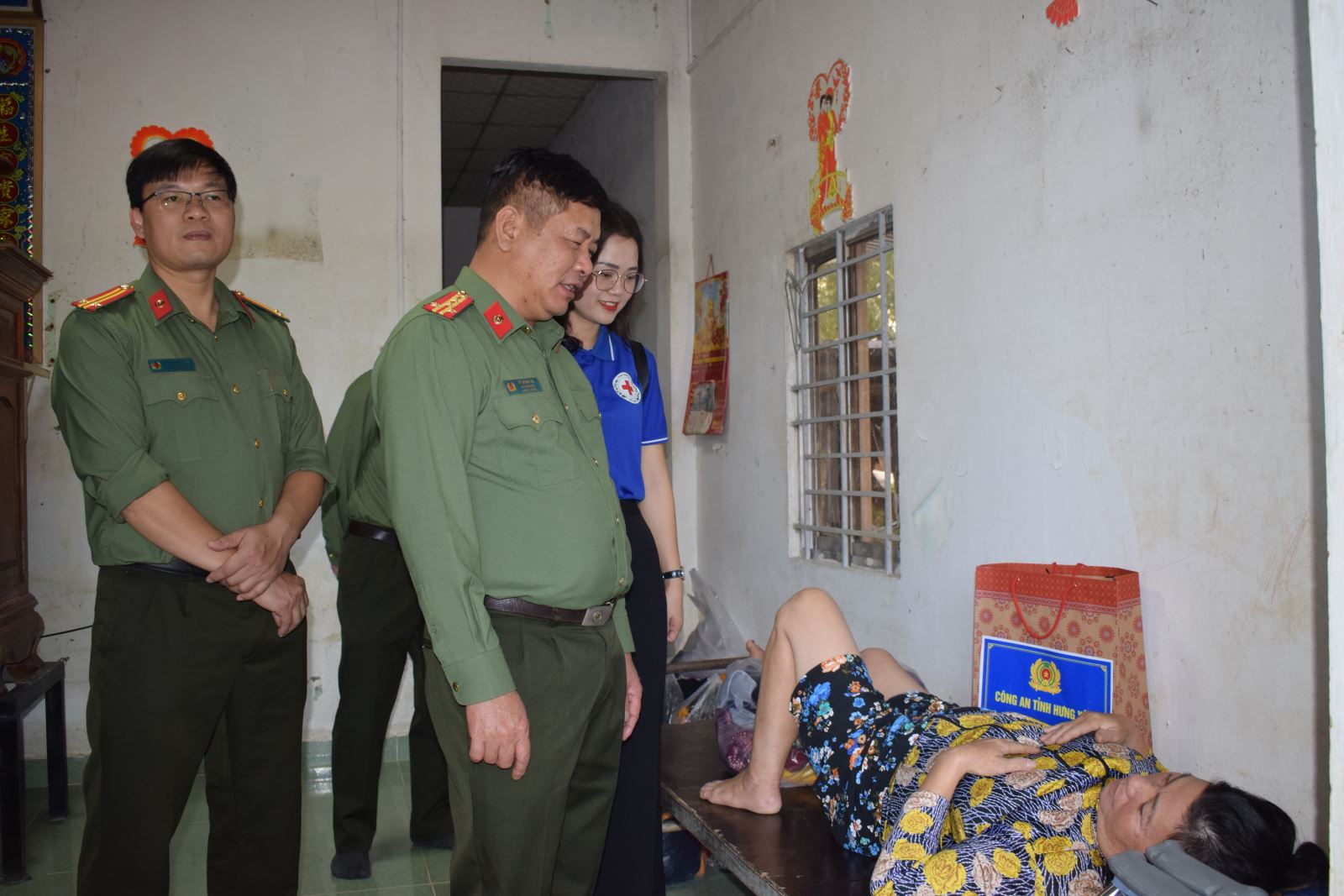 Đoàn công tác Công an tỉnh Hưng Yên tặng quà cho các gia đình bị thiệt hại nặng nề do mưa lũ