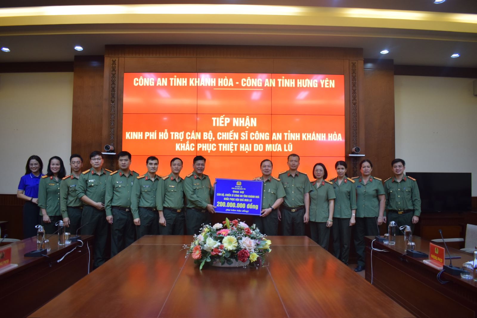 Đoàn công tác Công an tỉnh Hưng Yên trao tiền hỗ trợ Công an 3 tỉnh Khánh Hòa, Đắk Lắk và Gia Lai khắc phục hậu quả mưa lũ