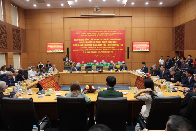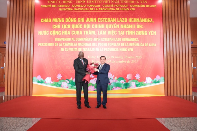 Ngày 04/10/2025, Đoàn đại biểu cấp cao Chính quyền Nhân dân Cuba do đồng chí Juan Esteban Lazo Hernández – Ủy viên Bộ Chính trị Đảng Cộng sản Cuba, Chủ tịch Quốc hội, Chủ tịch Hội đồng Nhà nước Cuba làm Trưởng đoàn đã đến thăm và làm việc tại tỉnh Hưng Yên. Đây là sự kiện chính trị, đối ngoại quan trọng, thể hiện mối quan hệ hữu nghị truyền thống đặc biệt giữa Việt Nam – Cuba.