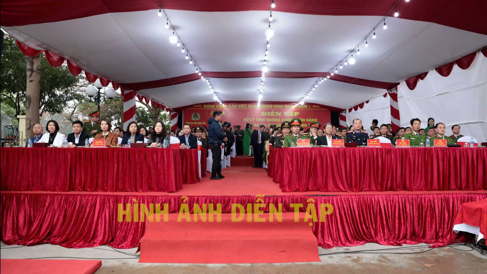 Ngày 08/02/2026, Công an tỉnh Hưng Yên tổ chức diễn tập xử lý tình huống cướp ngân hàng xảy ra trên địa bàn tỉnh. Dự và động viên các lực lượng tham gia diễn tập có đồng chí Đại tá Cao Minh Tuấn - Phó Giám đốc Công an tỉnh, Trưởng Ban chỉ đạo diễn tập; đại diện lãnh đạo các sở, ban, ngành có liên quan trên địa bàn tỉnh; đại diện các Cục nghiệp vụ thuộc Bộ Công an; đại diện lãnh đạo một số Công an đơn vị, địa phương thuộc Công an tỉnh; đại diện các ngân hàng, chủ tiệm vàng trên địa bàn tỉnh…