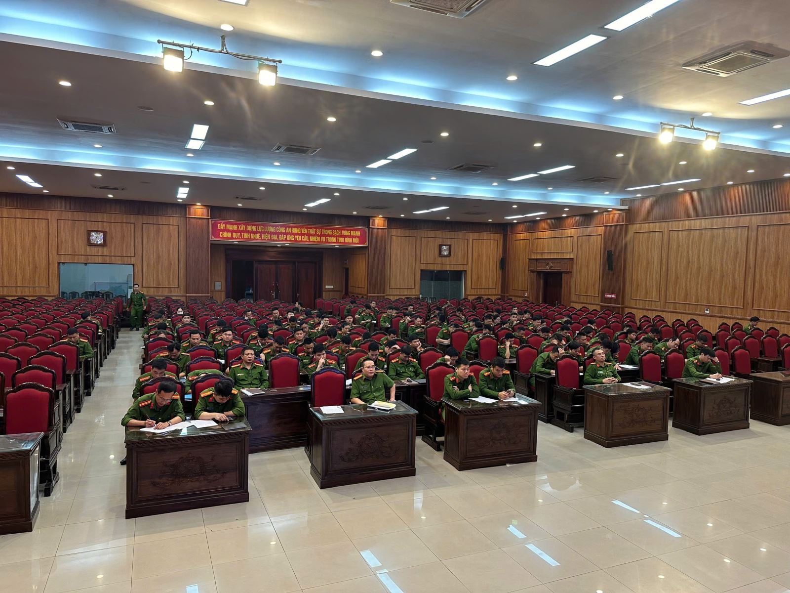 Đáng chú ý, bên cạnh việc duy trì địa điểm tổ chức theo kế hoạch, lãnh đạo Công an tỉnh đã linh hoạt bố trí một lớp học tại cơ sở 2 (phường Trần Lãm, tỉnh Hưng Yên). Việc phân bổ này không chỉ giúp rút ngắn quãng đường di chuyển cho cán bộ, chiến sĩ ở các địa bàn lân cận mà còn tạo điều kiện thuận lợi để học viên tham gia đầy đủ, nâng cao chất lượng tiếp thu và hiệu quả đào tạo.