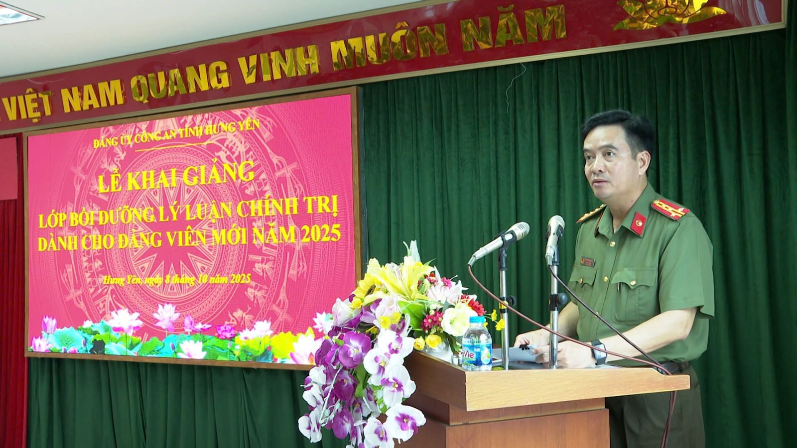 Đồng chí Đại tá Nguyễn Thành Sơn - Phó Bí thư Đảng ủy, Phó Giám đốc Công an tỉnh, Trưởng ban Khuyến học Công an tỉnh phát biểu chỉ đạo tại Lễ khai giảng Lớp bồi dưỡng lý luận chính trị cho Đảng viên mới năm 2025