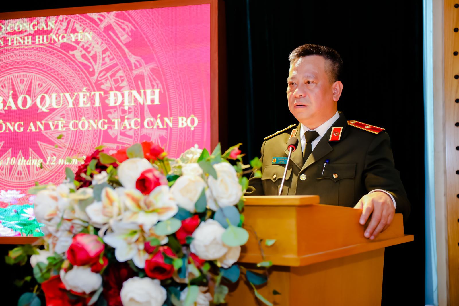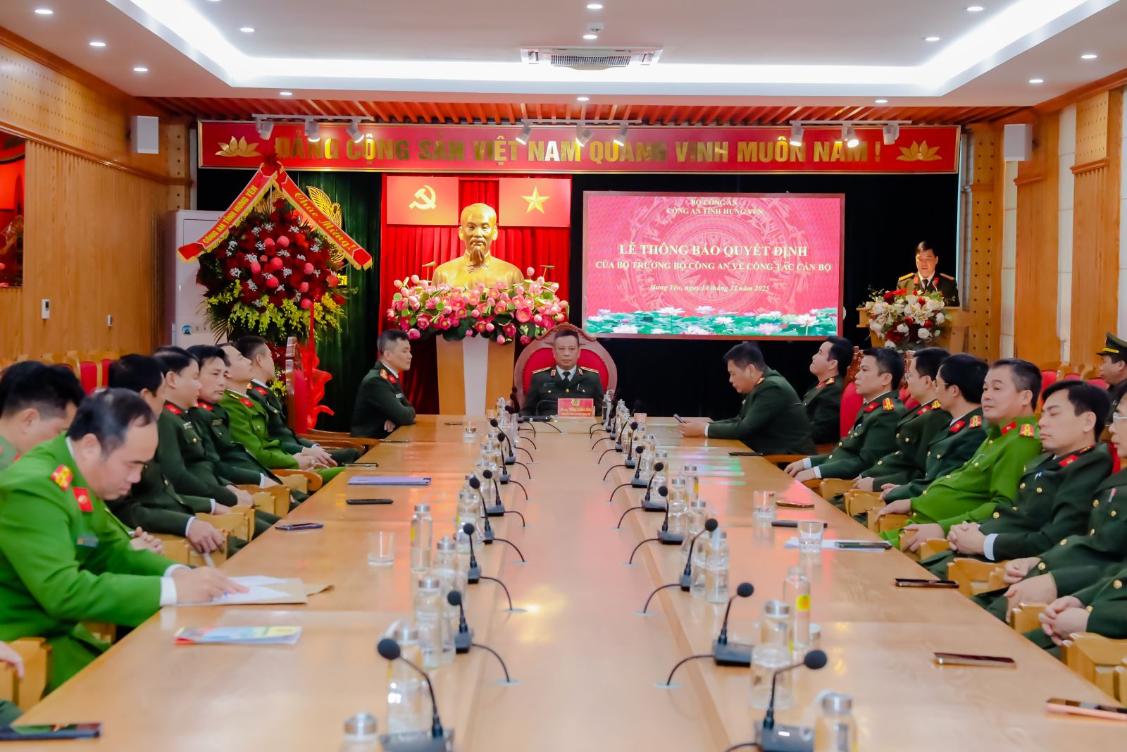Tại buổi lễ, thừa ủy quyền của Giám đốc Công an tỉnh, đồng chí Trưởng phòng Tổ chức cán bộ đã thông báo Quyết định của Bộ trưởng Bộ Công an về việc điều động đồng chí Đại tá Nguyễn Quốc Vương - Phó Giám đốc Công an tỉnh Hưng Yên đến nhận công tác và giữ chức vụ Phó Giám đốc Công an tỉnh Bắc Ninh. Thay mặt Công an tỉnh, các đồng chí trong Ban Thường vụ Đảng ủy, lãnh đạo Công an tỉnh đã tặng hoa chúc mừng đồng chí Đại tá Nguyễn Quốc Vương.