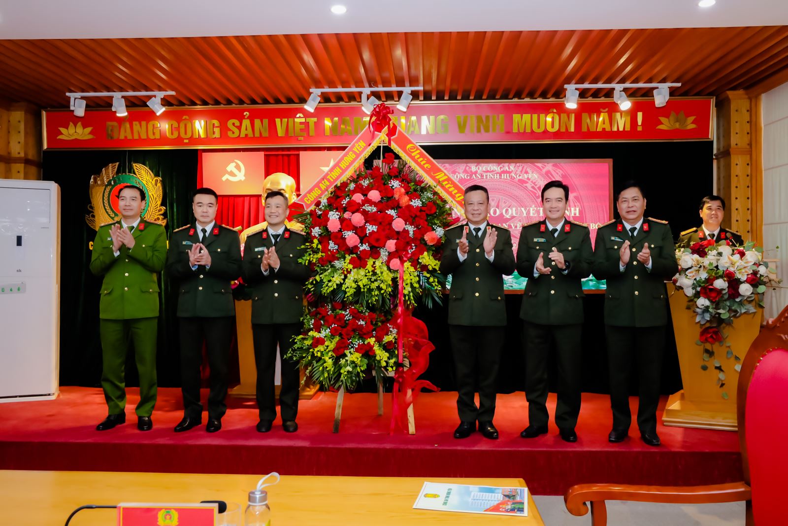Các đồng chí lãnh đạo Công an tỉnh Hưng Yên tặng hoa chúc mừng đồng chí Đại tá Nguyễn Quốc Vương