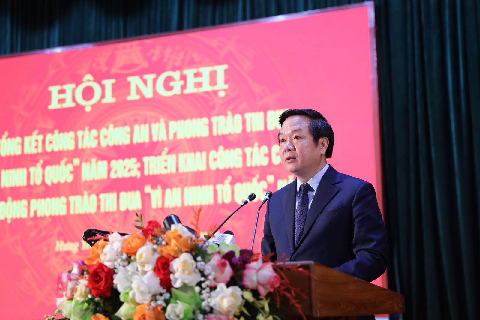 Tại hội nghị, thay mặt Đảng ủy Công an Trung ương, lãnh đạo Bộ Công an, đồng chí Thứ trưởng Phạm Thế Tùng ghi nhận và đánh giá cao những kết quả nổi bật; chúc mừng những thành tích, chiến công xuất sắc mà Công an tỉnh Hưng Yên đã đạt được trong năm 2025. Đồng thời nhấn mạnh, năm 2026 là năm đầu tiên triển khai thực hiện Nghị quyết Đại hội XIV của Đảng, Nghị quyết Đại hội Đảng bộ Công an Trung ương lần thứ VIII, yêu cầu công tác Công an trong kỷ nguyên mới bảo đảm 3 tốt: an ninh trật tự tốt nhất - góp phần phát triển đất nước tốt nhất - phục vụ Nhân dân tốt nhất. Để tiếp tục giữ vững an ninh trật tự, phục vụ thực hiện thắng lợi nhiệm vụ phát triển kinh tế, xã hội của tỉnh Hưng Yên, Công an tỉnh cần rà soát các nhóm chỉ tiêu công tác năm 2026 trong Nghị quyết của Đảng ủy Công an Trung ương về nhiệm vụ bảo vệ an ninh quốc gia, bảo đảm trật tự an toàn xã hội và xây dựng lực lượng Công an nhân dân để bổ sung, hoàn thiện Nghị quyết của Đảng ủy Công an tỉnh. Giữ vững an ninh quốc gia, trật tự an toàn xã hội, không để bị động bất ngờ trong mọi tình huống. Trong đó, triển khai cao độ các biện pháp bảo đảm tuyệt đối an ninh, an toàn Đại hội XIV của Đảng, bầu cử đại biểu Quốc hội khóa XVI, bầu cử đại biểu Hội đồng nhân dân các cấp nhiệm kỳ 2026-2031. Tăng cường bảo đảm an ninh cơ sở, phát huy vai trò của Công an cấp xã, lực lượng tham gia bảo vệ an ninh trật tự ở cơ sở trong nắm, xử lý từ cơ sở các vấn đề về an ninh trật tự… Tập trung các giải pháp kiềm chế, kéo giảm tội phạm; giải quyết kịp thời, ngay từ đầu và tại cơ sở các mâu thuẫn trong xã hội, trong Nhân dân, không để phát sinh tội phạm… Làm tốt công tác quản lý hành chính về trật tự xã hội, công tác quản lý can, phạm nhân; tăng cường các biện pháp đảm bảo trật tự an toàn giao thông, phòng cháy, chữa cháy... Chú trọng nâng cao hiệu lực, hiệu quả công tác quản lý Nhà nước về an ninh trật tự. Nâng cao chất lượng, hiệu quả phong trào toàn dân bảo vệ An ninh Tổ quốc…