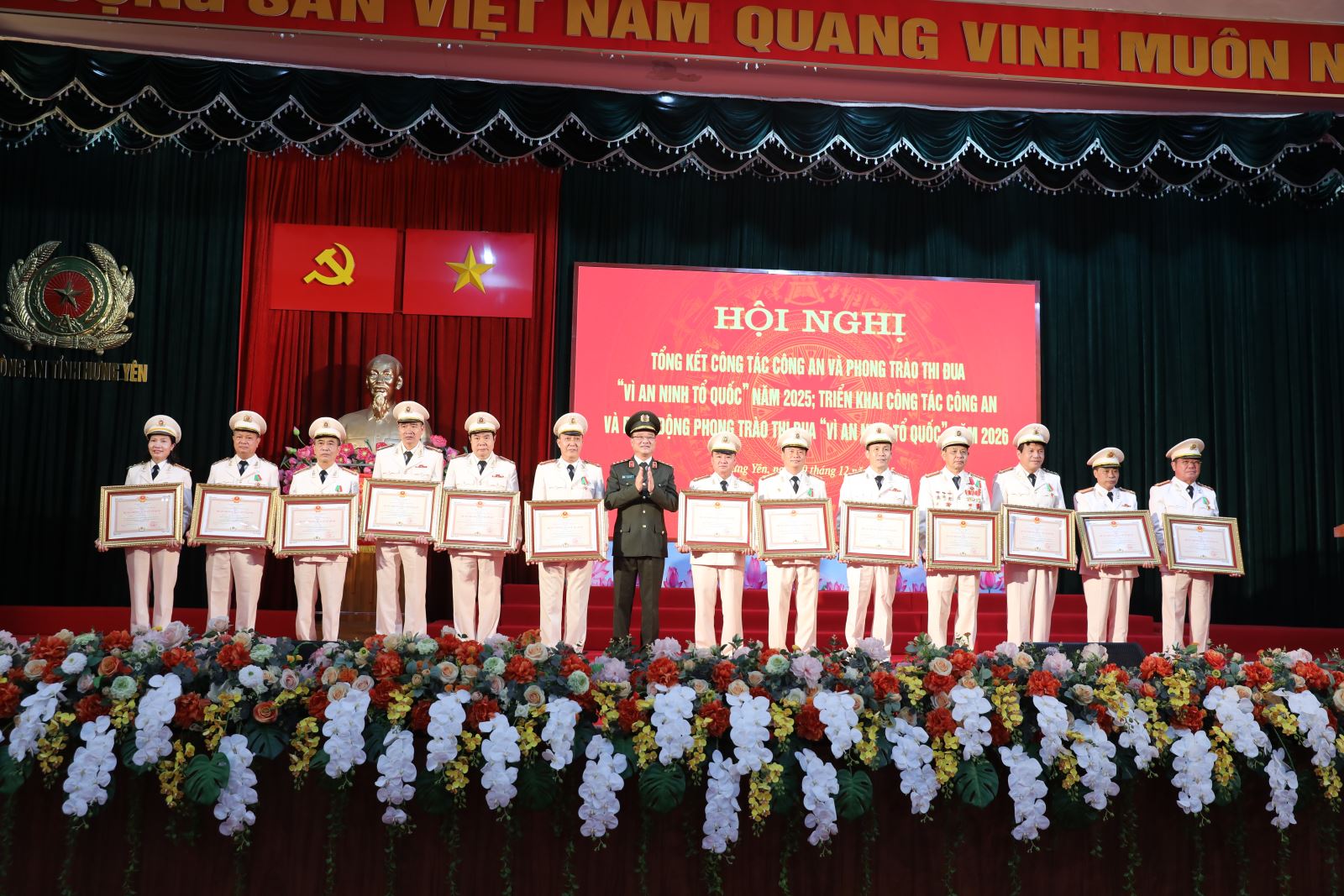 Tại hội nghị, Công an tỉnh phát động phong trào thi đua “Vì an ninh Tổ quốc” năm 2026 với khẩu hiệu “Công an Hưng Yên thực hiện theo Lời Bác dạy - Đổi mới tư duy, nâng cao trí thức - Kỷ luật nhất, trung thành nhất - Vì Đảng, vì dân”. Công an tỉnh đề ra 8 nhiệm vụ trọng tâm, gồm: triển khai, thực hiện có hiệu quả các chủ trương, quy định của Đảng, Nhà nước trong lĩnh vực thi đua, khen thưởng; phát động, tổ chức các phong trào thi đua phải thiết thực, hiệu quả ngay từ những ngày đầu, tháng đầu của năm 2026; tăng cường theo dõi, đôn đốc, kiểm tra, giám sát việc tổ chức phát động và thực hiện phong trào thi đua; chủ động nắm chắc tình hình, bám sát nhiệm vụ chính trị, sâu sát cơ sở, gần dân, sát dân; ứng dụng khoa học công nghệ để tạo chuyển biến đột phá trong công tác nghiệp vụ cơ bản, đáp ứng yêu cầu, nhiệm vụ; phát huy sức mạnh tổng hợp của cả hệ thống chính trị và toàn dân trong phòng, chống tội phạm; Chú trọng làm tốt công tác nghiệp vụ cơ bản; Đẩy mạnh và nâng cao hiệu quả công tác đấu tranh, phòng chống tham nhũng, lãng phí, tiêu cực...