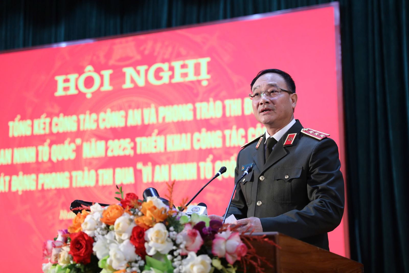 Phát biểu tại hội nghị, đồng chí Phó Bí thư Tỉnh ủy, Chủ tịch Ủy ban nhân dân tỉnh ghi nhận, biểu dương và đánh giá cao những kết quả mà Công an tỉnh Hưng Yên đã đạt được trong năm 2025, đồng thời khẳng định lực lượng Công an đã góp phần quan trọng trong công tác đảm bảo an ninh trật tự, phát triển kinh tế - xã hội của địa phương. Trên cơ sở đó, Công an tỉnh cần phát huy kết quả đã đạt được, xác định rõ những tồn tại, hạn chế để thực hiện có hiệu quả hơn nữa nhiệm vụ của năm 2026 và các năm tiếp theo. Đồng chí chỉ đạo lực lượng Công an tỉnh trong thời gian tới phải tiếp tục dự báo, nắm chắc tình hình, chủ động tham mưu Tỉnh ủy, Hội đồng nhân dân, Ủy ban nhân dân tỉnh lãnh đạo, chỉ đạo thắng lợi các nhiệm vụ bảo đảm an ninh quốc gia, giữ gìn trật tự an toàn xã hội; bảo vệ an toàn tuyệt đối các mục tiêu trọng điểm, các sự kiện chính trị, văn hóa, xã hội quan trọng của đất nước và của tỉnh. Chủ động triển khai các kế hoạch, phương án về đảm bảo an ninh trật tự, gắn với phát triển kinh tế - xã hội và mở rộng quan hệ đối ngoại theo chức năng, nhiệm vụ. Thực hiện hiệu quả đợt cao điểm tấn công trấn áp tội phạm, bảo đảm an ninh, trật tự, bảo vệ tuyệt đối an ninh, an toàn Đại hội đại biểu toàn quốc lần thứ XIV của Đảng, bầu cử đại biểu Quốc hội khóa XVI, Hội đồng nhân dân các cấp, nhiệm kỳ 2026 – 2031, Tết nguyên đán Bính Ngọ 2026, các sự kiện lớn của đất nước và các lễ hội đầu năm. Tiếp tục thực hiện tốt công tác xây dựng Đảng, xây dựng lực lượng; đẩy mạnh các biện pháp đấu tranh, phòng, chống các loại tội phạm và vi phạm pháp luật; kết hợp chặt chẽ giữa công tác phòng ngừa với nâng cao chất lượng, hiệu quả công tác phát hiện, điều tra, xử lý tội phạm. Nâng cao hiệu lực, hiệu quả công tác quản lý Nhà nước về an ninh trật tự gắn với triển khai quyết liệt các giải pháp ứng dụng, khai thác Cơ sở dữ liệu quốc gia về dân cư; các tiện ích của Đề án số 06 của Chính phủ để phục vụ công tác quản lý xã hội và phòng, chống tội phạm. Triển khai đồng bộ các giải pháp đảm bảo trật tự an toàn giao thông, kiềm chế tai nạn và ùn tắc giao thông. Đẩy mạnh xây dựng phong trào toàn dân bảo vệ An ninh Tổ quốc trong tình hình mới…