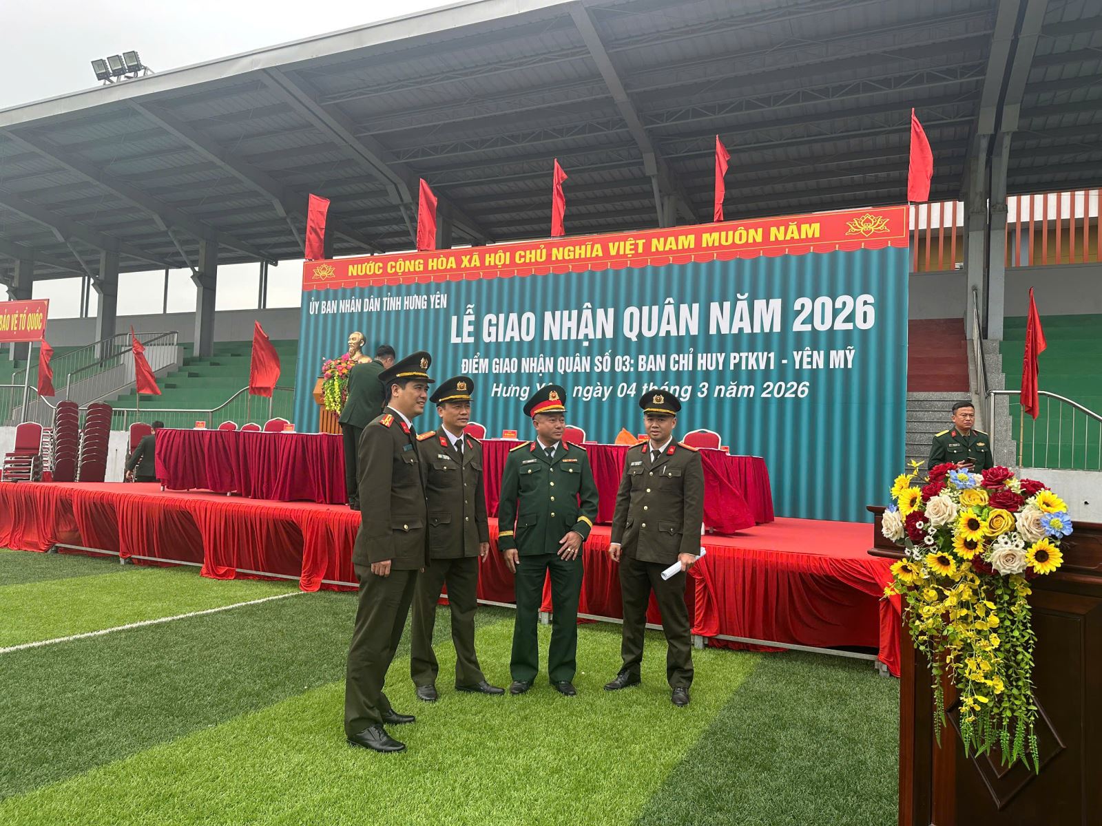 Theo Kế hoạch của Giám đốc Công an tỉnh, đúng 8h ngày 04/03/2026, Lễ giao nhận quân năm 2026 được tổ chức đồng loạt gồm các xã phường tại 9 khu vực của Hội đồng nghĩa vụ Quân sự tỉnh; sau đó tiếp nhận và bàn giao quân cho các đơn vị tuyển quân của Bộ tại 02 khu vực gồm Trung tâm huấn luyện và bồi dưỡng nghiệp vụ, Công an tỉnh và Công an phường Trần Lãm.