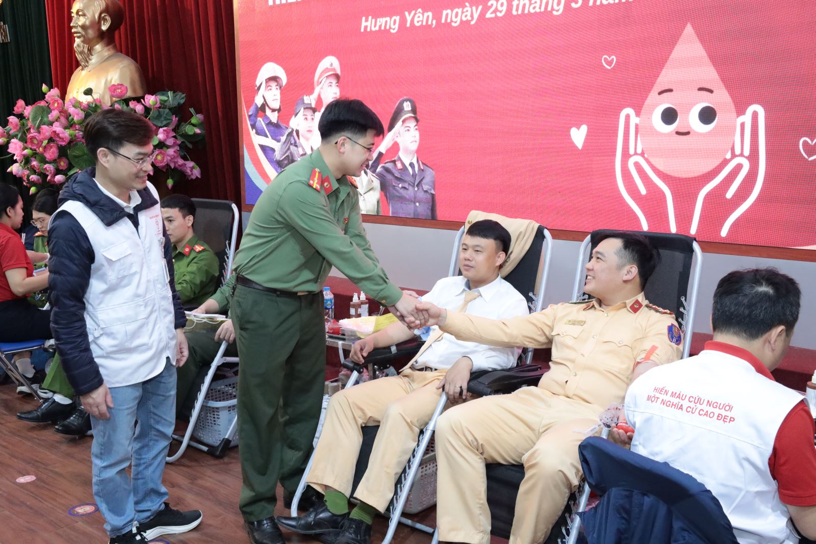 Cán bộ, chiến sĩ tham gia chấp hành nghiêm theo sự hướng dẫn của nhân viên y tế; bảo đảm đầy đủ điều kiện, tiêu chuẩn sức khỏe theo quy định của Viện Huyết học - Truyền máu Trung ương (không mắc các bệnh truyền nhiễm; cân nặng theo quy định; bảo đảm thời gian giữa hai lần hiến máu tối thiểu 03 tháng…). Công an các đơn vị, Công an cấp xã đã chủ động đẩy mạnh tuyên truyền với nhiều hình thức phong phú, gắn với các thông điệp ý nghĩa như: “Hiến giọt máu đào - Trao đi sự sống”, “Máu cứu người - Nụ cười hạnh phúc”, “Một giọt máu - Triệu niềm tin”… Qua đó, tạo khí thế thi đua sôi nổi, thu hút đông đảo cán bộ, chiến sĩ, đặc biệt là đoàn viên, thanh niên đăng ký tham gia. Ngày hội hiến máu tình nguyện năm 2026 không chỉ là hoạt động thiết thực đầu Xuân mà còn là dịp để mỗi cán bộ, chiến sĩ Công an tỉnh thể hiện bản lĩnh, trách nhiệm và tấm lòng nhân ái. Mỗi giọt máu cho đi là một nghĩa cử cao đẹp, góp phần nhân lên hạnh phúc, lan tỏa hình ảnh người chiến sĩ Công an Hưng Yên bản lĩnh, nhân văn, vì Nhân dân phục vụ.