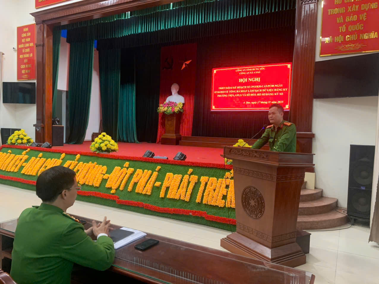 Chiều ngày 17/11/2025, Công an xã A Sào tổ chức Hội nghị triển khai Kế hoạch của Công an tỉnh Hưng Yên về tổng rà soát, làm sạch dữ liệu đăng ký phương tiện, giấy phép lái xe và số hóa hồ sơ đăng ký xe. Dự chỉ đạo có đồng chí Đại úy Hoàng Thiện Phước, Phó trưởng Công an xã A Sào, cán bộ chiến sĩ Công an xã, cùng 40 đồng chí lực lượng tham gia bảo vệ ANTT cơ sở A Sào.