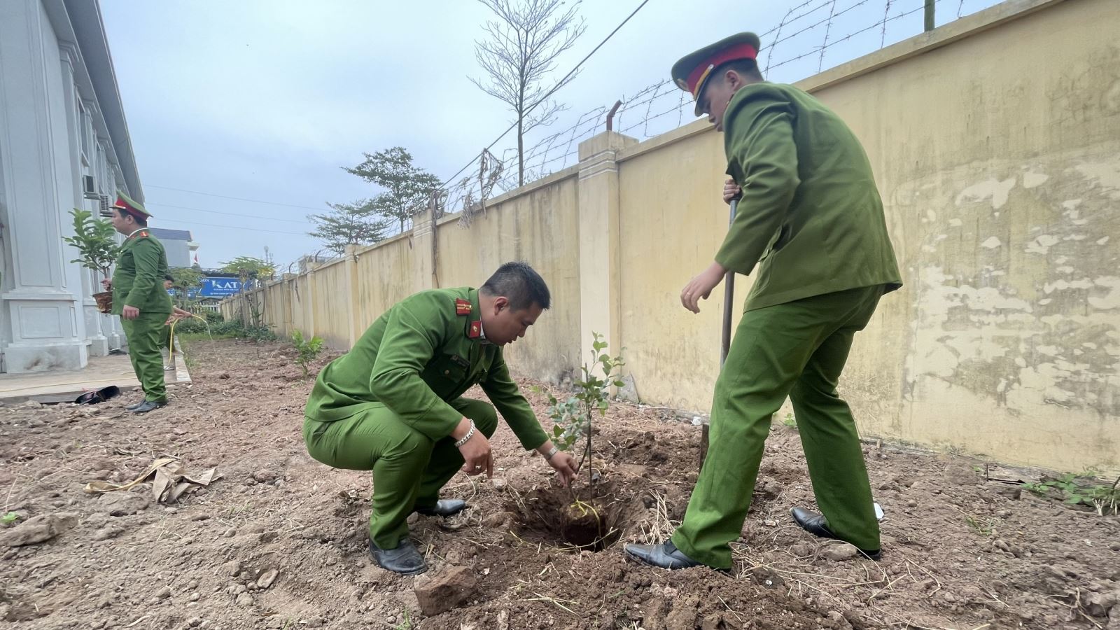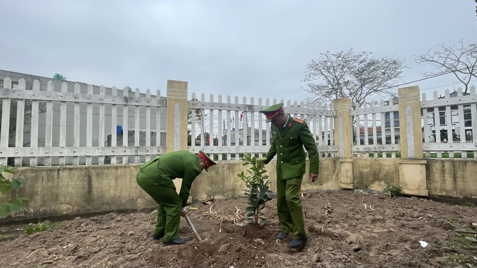Công an xã Ái Quốc tổ chức trồng cây tại trụ sở đơn vị