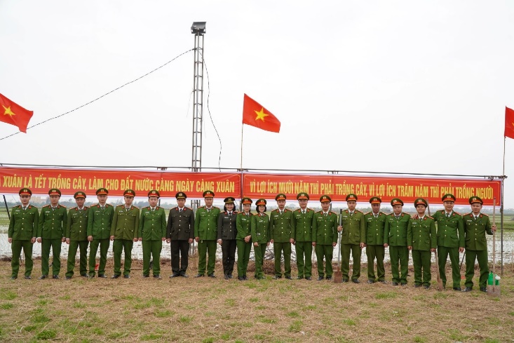 Tập thể CBCS tham gia lễ phát động Tết trồng cây chụp ảnh lưu niệm