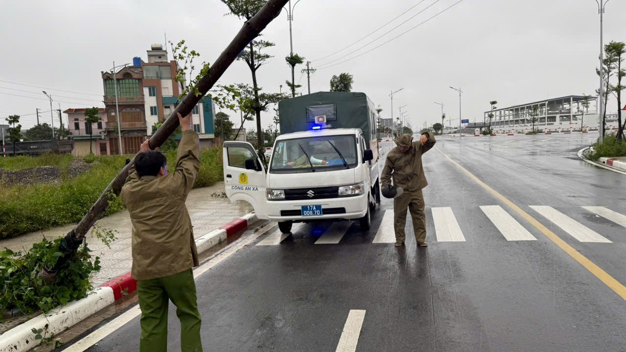 Công an xã Ái Quốc ứng phó với bão số 3