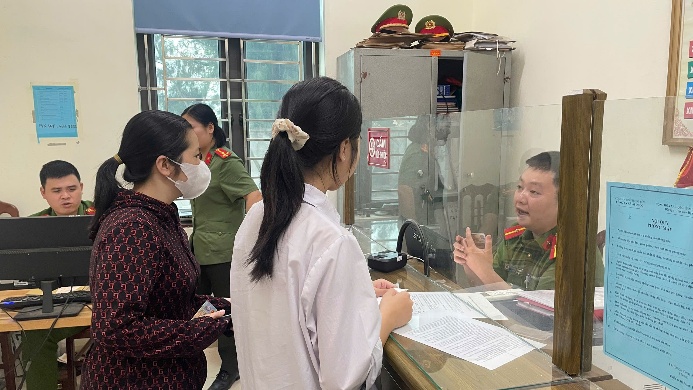 Cán bộ hướng dẫn phụ huynh và các em học sinh là thủ tục cấp CCCD