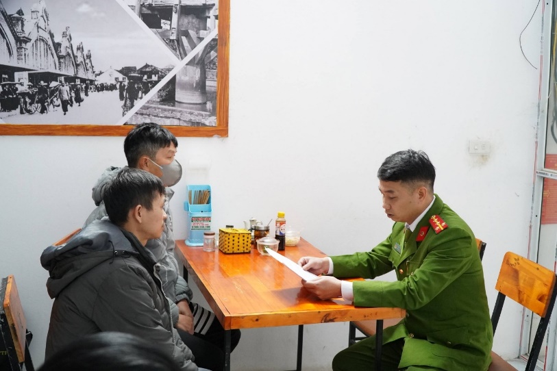 Công an xã nhắc nhờ, hướng dẫn cơ sở khắc phục một số thiếu sót trong quá trình kiểm tra