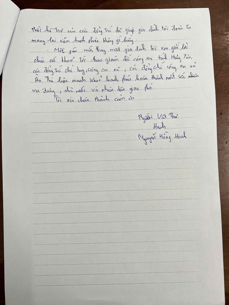 Gia đình ông Thanh viết thư cảm ơn Công an xã Ân Thi