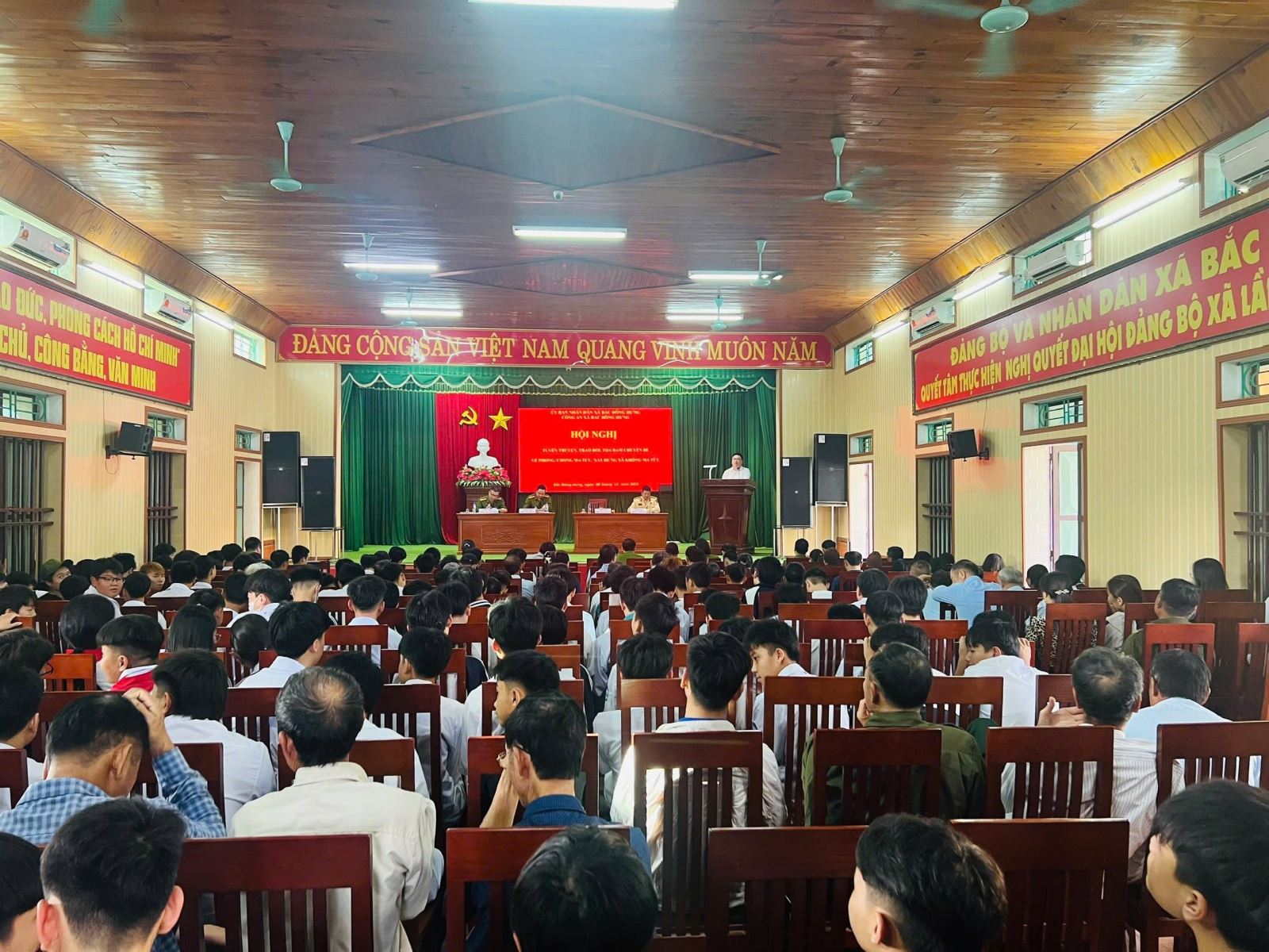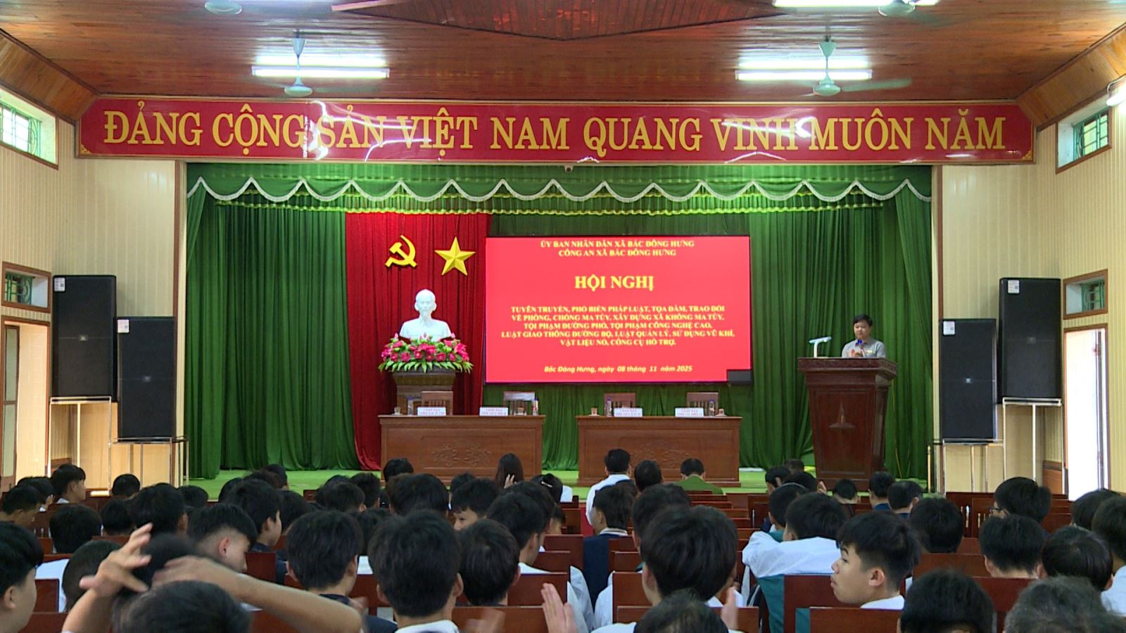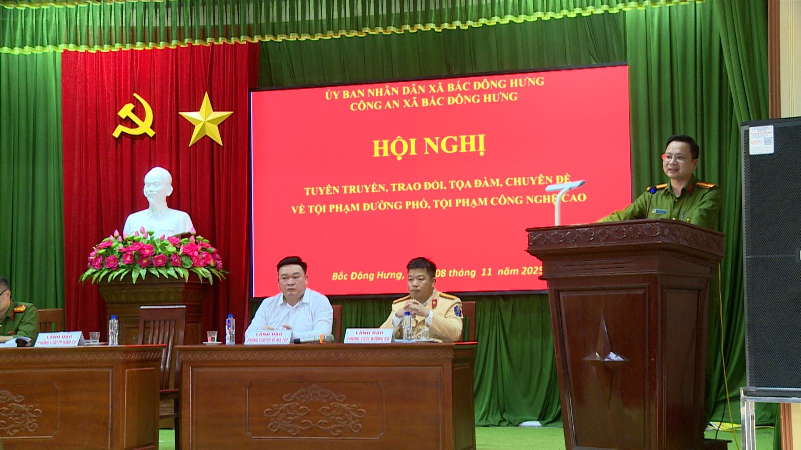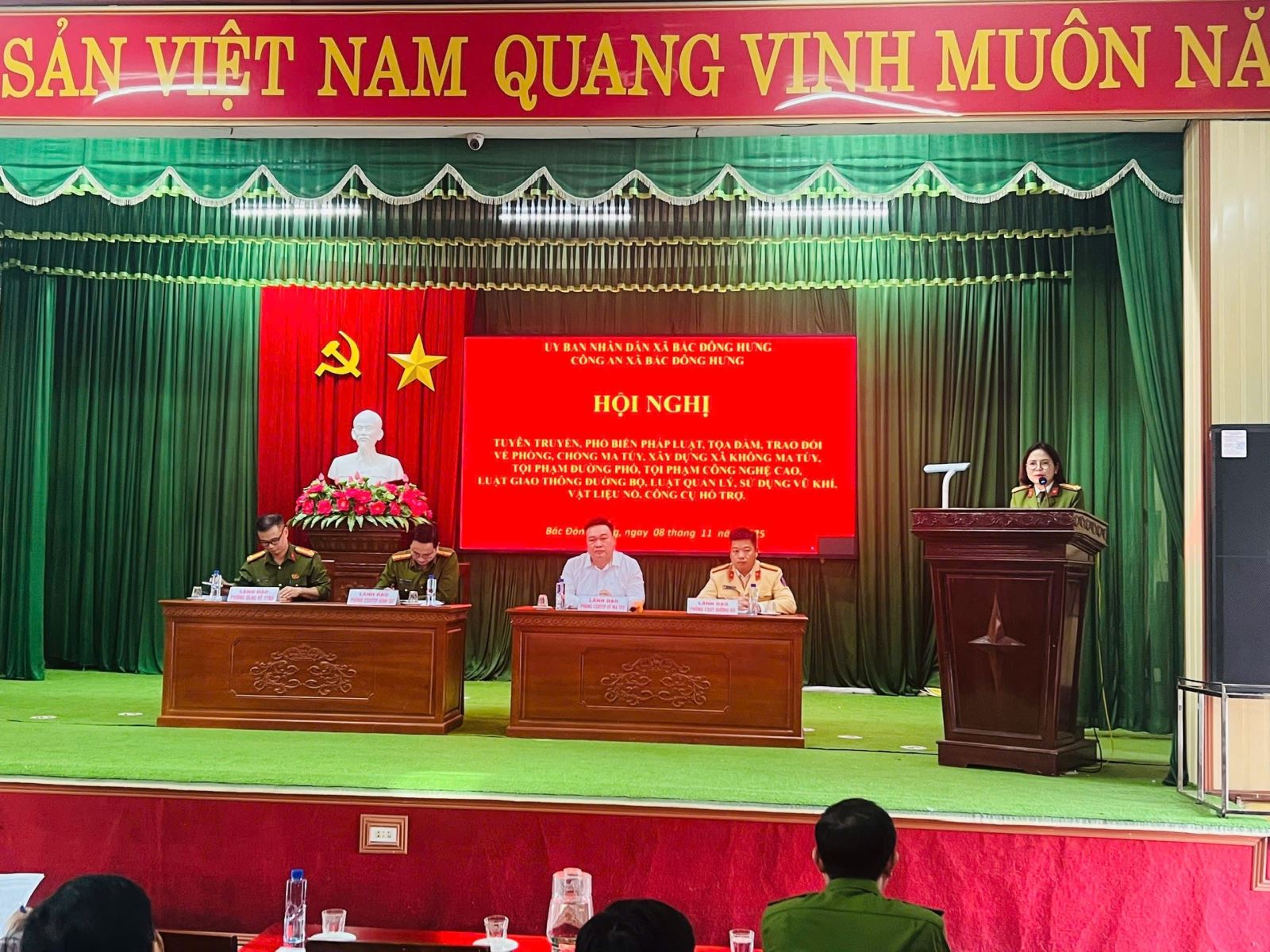 Ngày 08/11/2025, Công an xã Bắc Đông Hưng tham mưu Ủy ban nhân dân xã tổ chức hội nghị tuyên truyền, đối thoại cho hơn 300 thanh, thiếu niên, hộ gia đình, nhà trường và các tổ chức đoàn thể cùng Nhân dân trên dịa bàn xã về phòng, chống ma túy, phòng chống tội phạm sử dụng công nghệ cao, thực hiện Luật giao thông đường bộ, Luật quản lý, sử dụng vũ khí, vật liệu nổ, công cụ hỗ trợ và pháo.