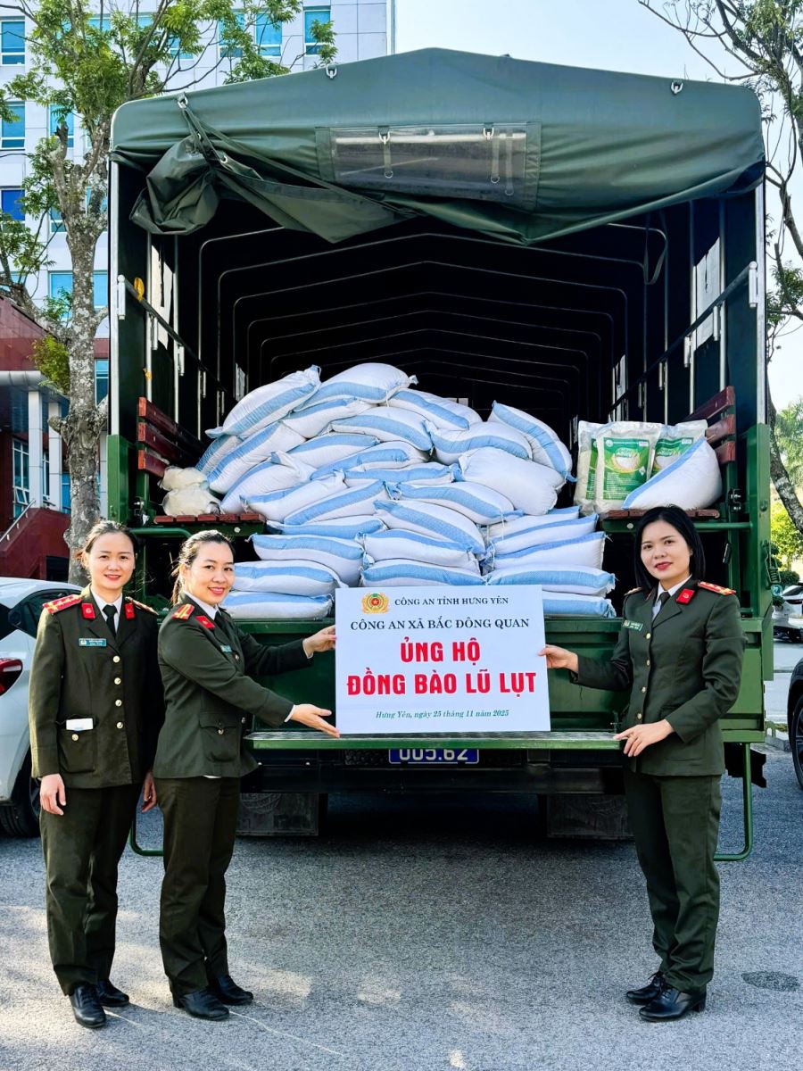 Ngày 26/11/2025, toàn bộ số gạo quyên góp đã được Công an xã Bắc Đông Quan bàn giao cho Ban Phụ nữ Công an tỉnh Hưng Yên để chuyển đến đồng bào vùng lũ.