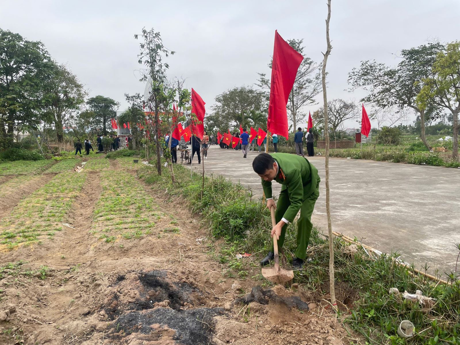 Bên cạnh nhiệm vụ chuyên môn, cán bộ, chiến sĩ Công an xã còn tích cực tham gia trồng cây cùng các đồng chí lãnh đạo, cán bộ, công chức và đoàn viên thanh niên tại khu Đài tưởng niệm các anh hùng liệt sĩ và khu vực sân vận động xã. Hoạt động thể hiện tinh thần trách nhiệm, gương mẫu đi đầu của lực lượng Công an xã trong các phong trào thi đua yêu nước, góp phần xây dựng cảnh quan môi trường xanh - sạch - đẹp, phục vụ nhiệm vụ phát triển kinh tế - xã hội tại địa phương.