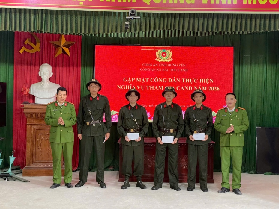 Nhằm kịp thời động viên tinh thần các công dân chuẩn bị lên đường thực hiện nghĩa vụ tham gia Công an nhân dân, sáng ngày 27/2/2026, Công an xã Bắc Thụy Anh đã tổ chức chương trình gặp mặt các tân binh trước ngày nhập ngũ. Tại buổi gặp mặt, lãnh đạo Công an xã đã trực tiếp thăm hỏi tình hình sức khỏe, đời sống và tâm tư, nguyện vọng của các công dân trúng tuyển nghĩa vụ tham gia Công an nhân dân năm 2026. Đồng thời ghi nhận tinh thần trách nhiệm, sự sẵn sàng cống hiến của các thanh niên - những người sẽ tiếp bước truyền thống, góp phần bảo vệ an ninh trật tự, giữ gìn bình yên cuộc sống Nhân dân.