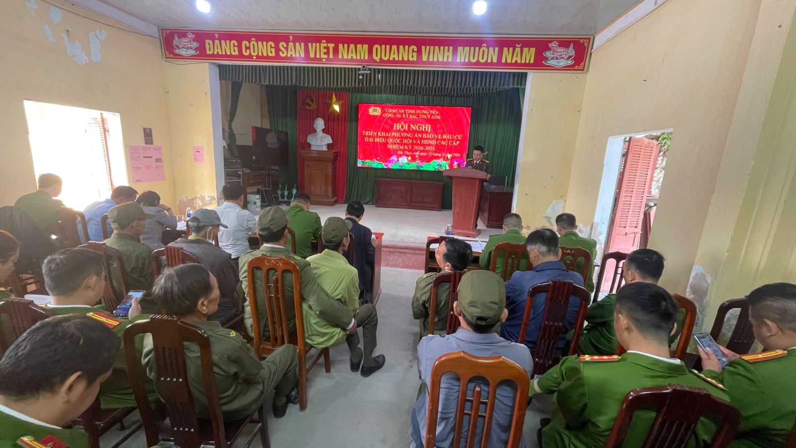 Tại hội nghị, Chỉ huy Công an xã đã đánh giá tình hình an ninh chính trị, trật tự an toàn xã hội trên địa bàn; quán triệt các nội dung, yêu cầu, nhiệm vụ trọng tâm trong công tác bảo đảm an ninh, trật tự trước, trong và sau ngày bầu cử; thông qua kế hoạch, triển khai phương án bảo vệ cụ thể tại từng khu vực bỏ phiếu, phân công nhiệm vụ rõ ràng cho 64 đồng chí thường trực tại 18 khu vực bỏ phiếu nhằm tập trung nắm chắc tình hình, chủ động phát hiện, phòng ngừa và kịp thời xử lý mọi tình huống phát sinh, không để xảy ra các vụ việc phức tạp ảnh hưởng đến quá trình tổ chức bầu cử, không để bị động, bất ngờ trong mọi tình huống.