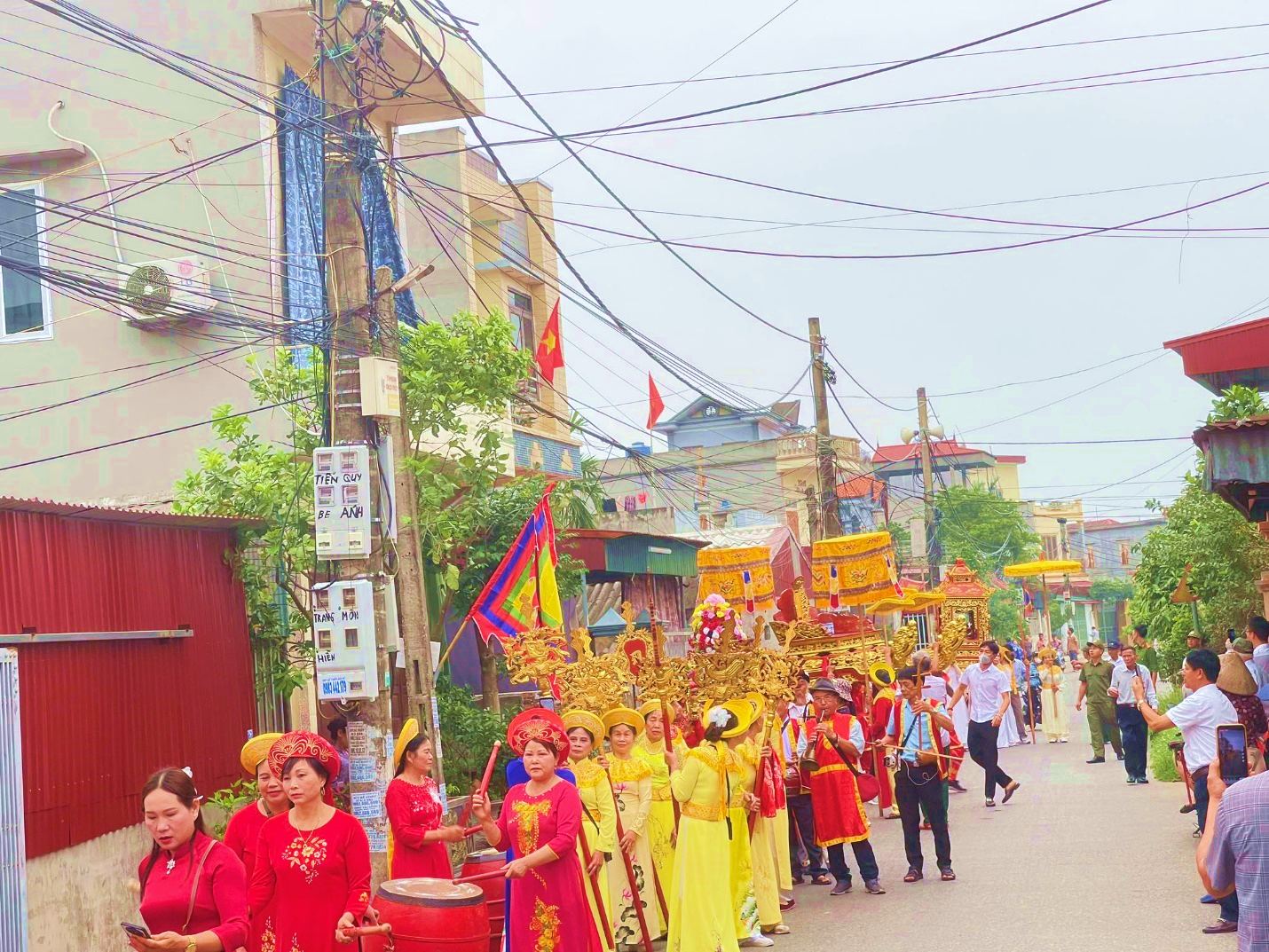 Điểm nhấn nổi bật của lễ hội năm nay là Lễ rước kiệu truyền thống diễn ra vào ngày khai hội với quy mô lớn, trang nghiêm và rực rỡ. Đoàn rước di chuyển qua nhiều tuyến đường trên địa bàn xã, thu hút đông đảo người dân tham gia, tạo nên không khí tưng bừng, náo nhiệt nhưng vẫn giữ được sự tôn nghiêm vốn có của một nghi lễ truyền thống.