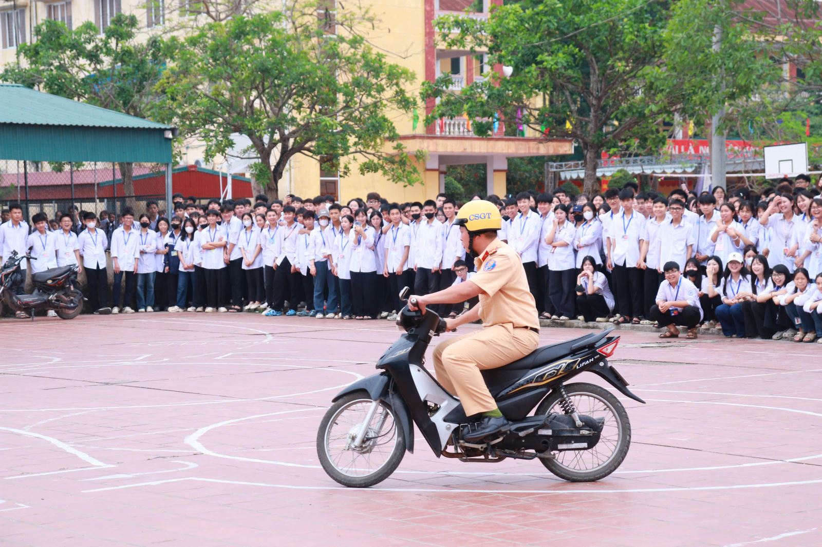 Tại buổi tuyên truyền, các cán bộ Cảnh sát giao thông đã truyền đạt những nội dung cơ bản của pháp luật về ATGT, tập trung vào các quy định liên quan trực tiếp đến học sinh như: độ tuổi điều khiển phương tiện, bắt buộc đội mũ bảo hiểm, không chở quá số người quy định, không sử dụng điện thoại khi tham gia giao thông. Bên cạnh đó, các lỗi vi phạm phổ biến, nguyên nhân dẫn đến tai nạn giao thông cũng được phân tích cụ thể, giúp học sinh nhận diện rõ những hành vi nguy hiểm và hậu quả có thể xảy ra.