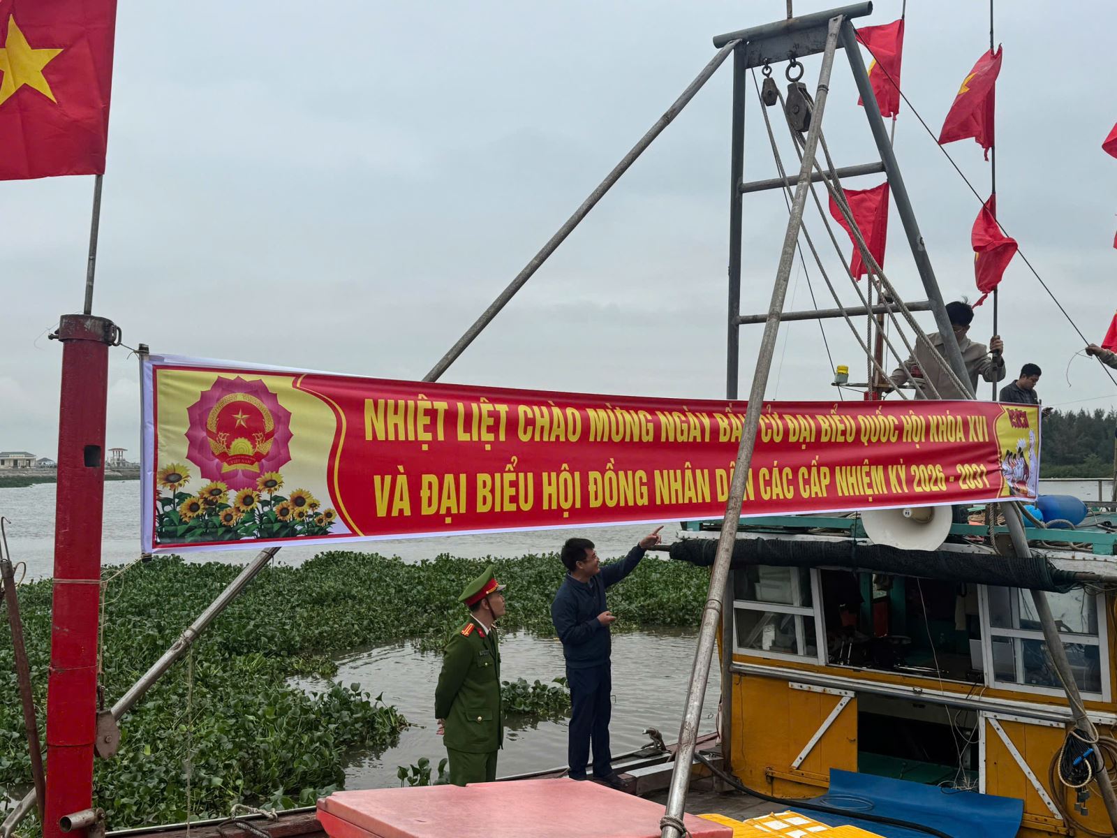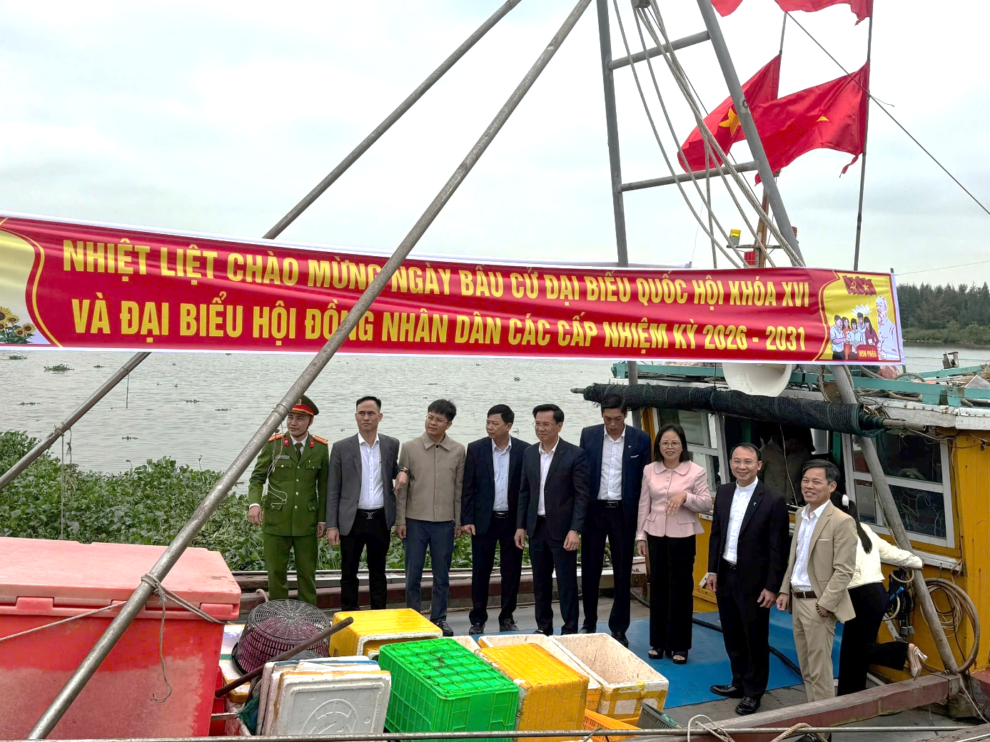 Lực lượng Công an xã cùng cấp uỷ, chính quyền địa phương tuyên truyền, vận động ngư dân tích cực tham gia bầu cử đại biểu Quốc hội khóa XVI và bầu cử HĐND các cấp nhiệm kỳ 2026-2031