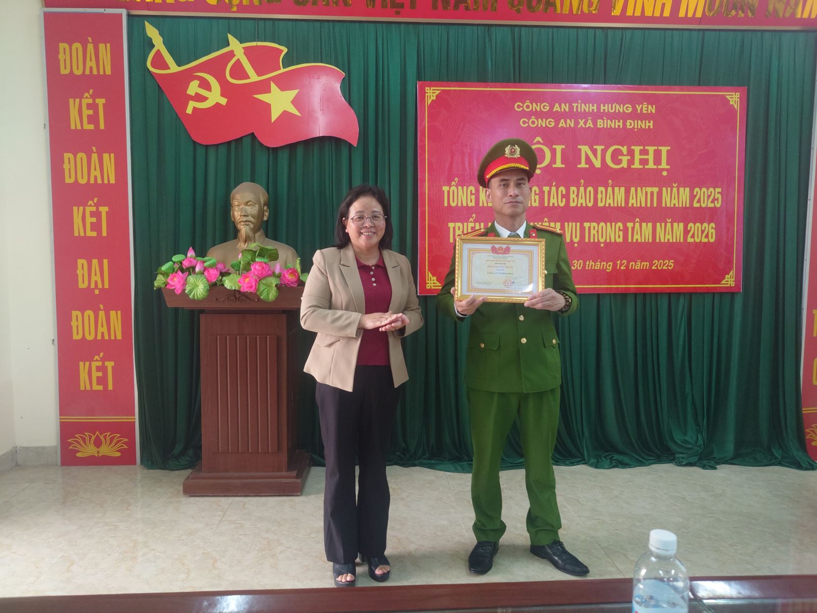 Ngày 30/12/2025, Công an xã Bình Định tổ chức Hội nghị tổng kết công tác Công an năm 2025; triển khai nhiệm vụ trọng tâm và phát động phong trào thi đua “Vì An ninh Tổ quốc” năm 2026. Đây là sự kiện quan trọng nhằm đánh giá kết quả một năm thực hiện nhiệm vụ bảo vệ an ninh quốc gia, giữ gìn trật tự an toàn xã hội tại địa phương sau khi thực hiện chủ trương sáp nhập địa giới hành chính và tổ chức chính quyền địa phương 2 cấp.
