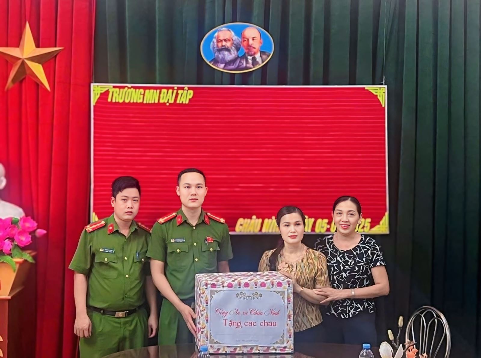 Công an xã Châu Ninh trao quà tại các trường mầm non trên địa bàn