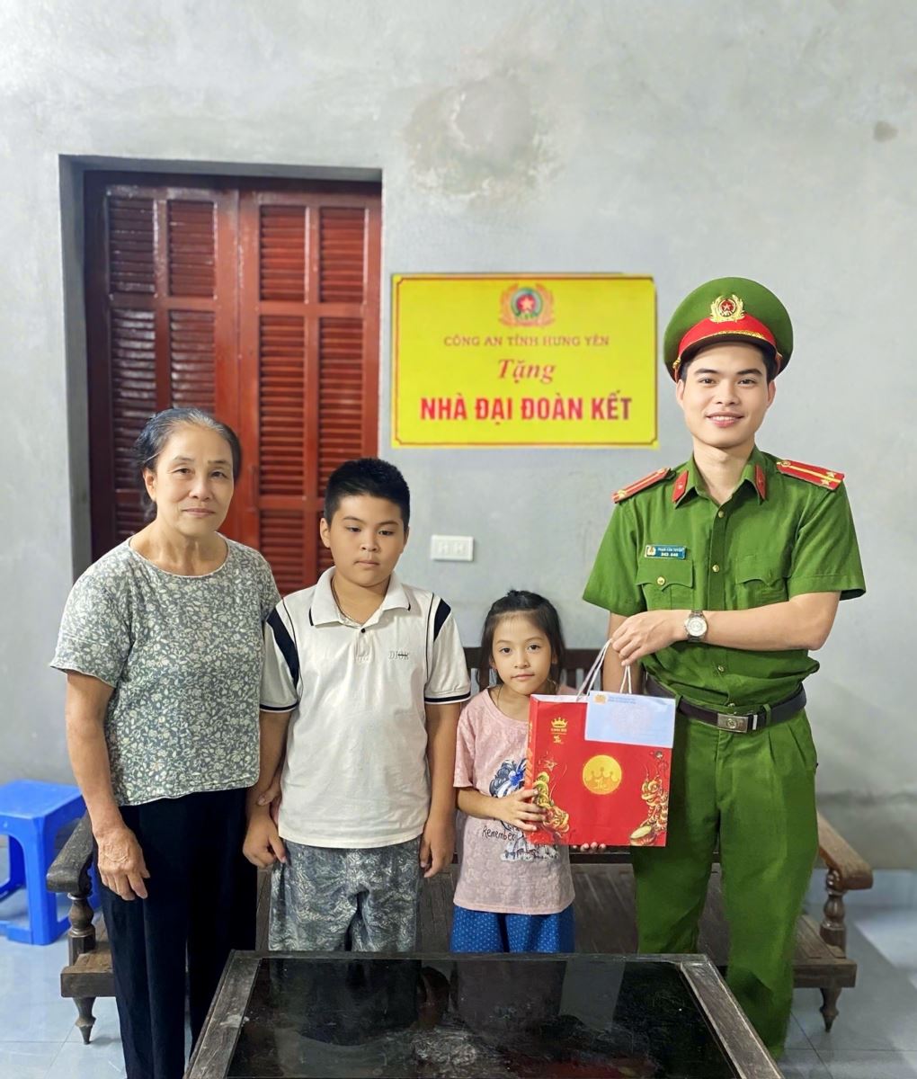 Đồng thời, nhân dịp Tết trung thu 2025, Công an xã Châu Ninh tiếp tục quan tâm, trao tiền đỡ đầu và quà Trung thu cho 02 cháu nội của bà Lê Thị Hìn (Nguyễn Hữu Đăng Anh và Nguyễn Thị Ánh Phương) - hộ gia đình thuộc diện khó khăn trong chương trình xóa nhà tạm, nhà dột nát.