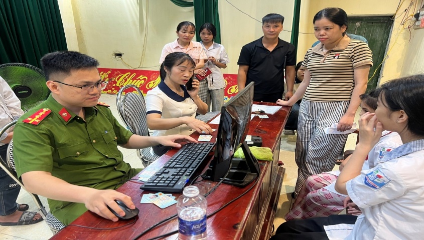 Công an xã Diên Hà tổ chức cấp định danh điện tử cho học sinh trên địa bàn