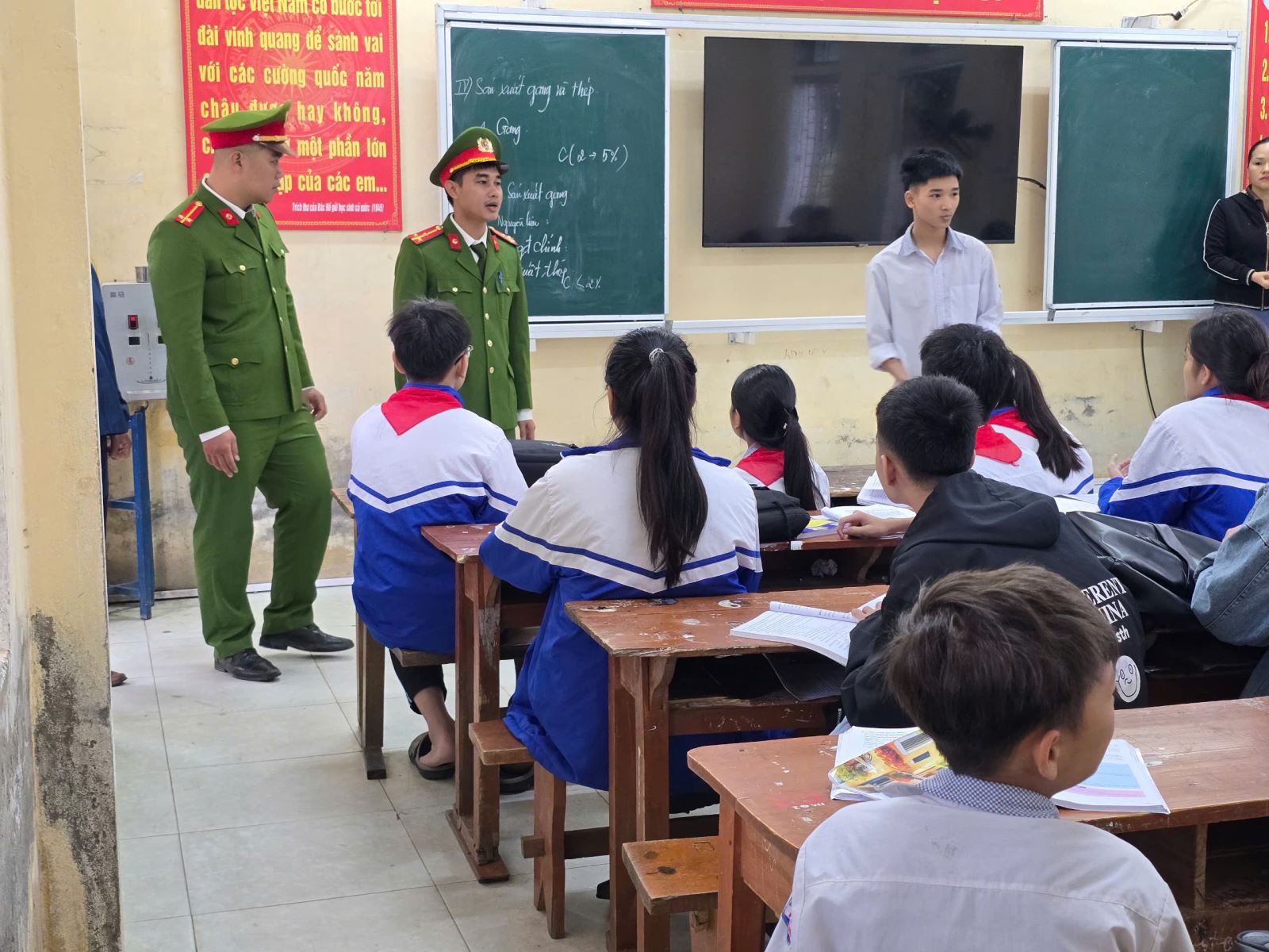 Trong quá trình kiểm tra, Tổ công tác tiến hành kiểm tra đột xuất việc chấp hành nội quy, quy định của học sinh; phối hợp với Ban giám hiệu nhà trường ký cam kết không để xảy ra tình trạng học sinh mang theo, tàng trữ, chế tạo, mua bán vũ khí, vật liệu nổ, công cụ hỗ trợ, pháo các loại trong và ngoài khu vực trường học. Song song với đó, lực lượng Công an xã đã lồng ghép tuyên truyền, phổ biến pháp luật cho học sinh về kỹ năng phòng tránh bạo lực học đường, chấp hành nghiêm Luật Giao thông đường bộ và phòng ngừa các hành vi vi phạm trên không gian mạng.