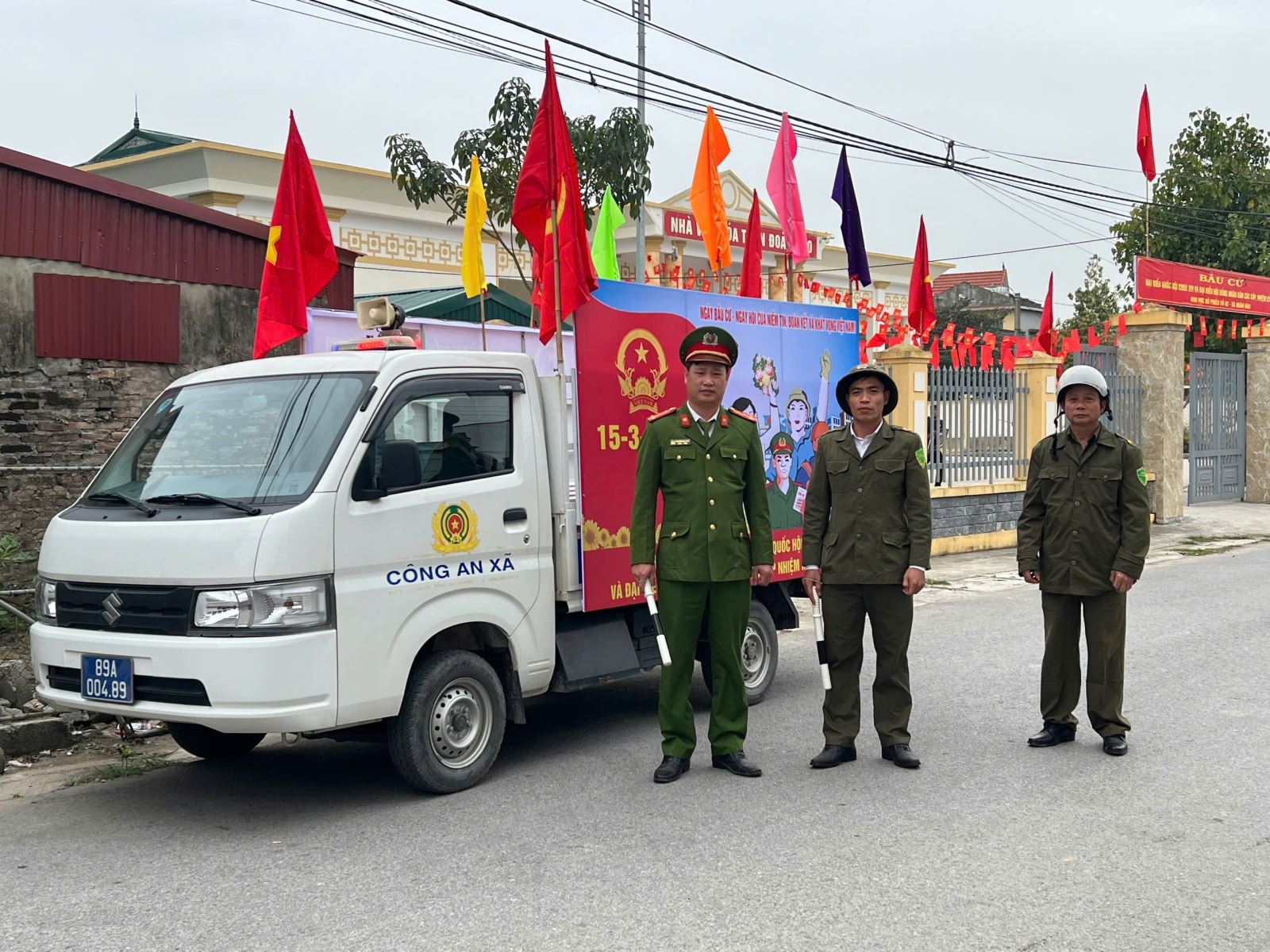 Trong đó, đã chỉ đạo lực lượng Cảnh sát trật tự sử dụng xe ô tô được trang cấp gắn băng rôn, khẩu hiệu và phát bài tuyên truyền bằng loa phóng thanh trên xe đến từng đường to, ngõ xóm, thôn, khu dân cư với nội dung ngắn gọn, dễ hiểu để tiếp cận gần, trực tiếp với người dân. Tập trung vào quyền và nghĩa vụ của cử tri; tiêu chuẩn đại biểu; nguyên tắc bầu cử; ý nghĩa chính trị của cuộc bầu cử….