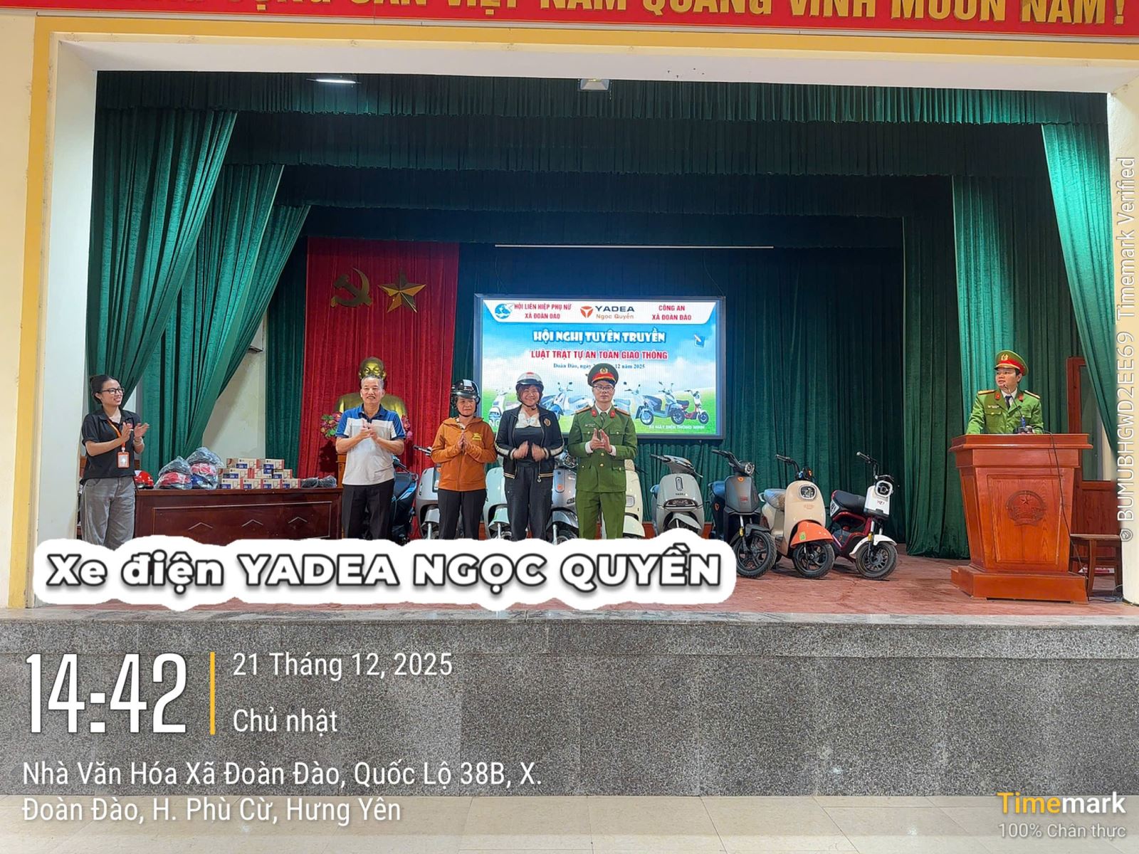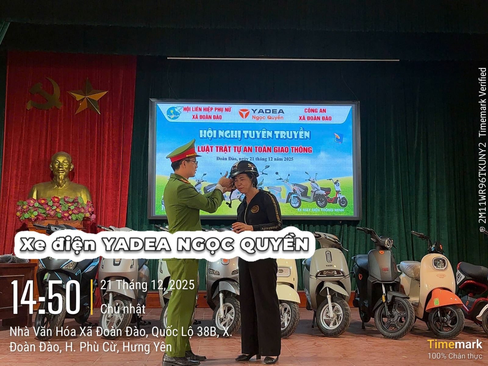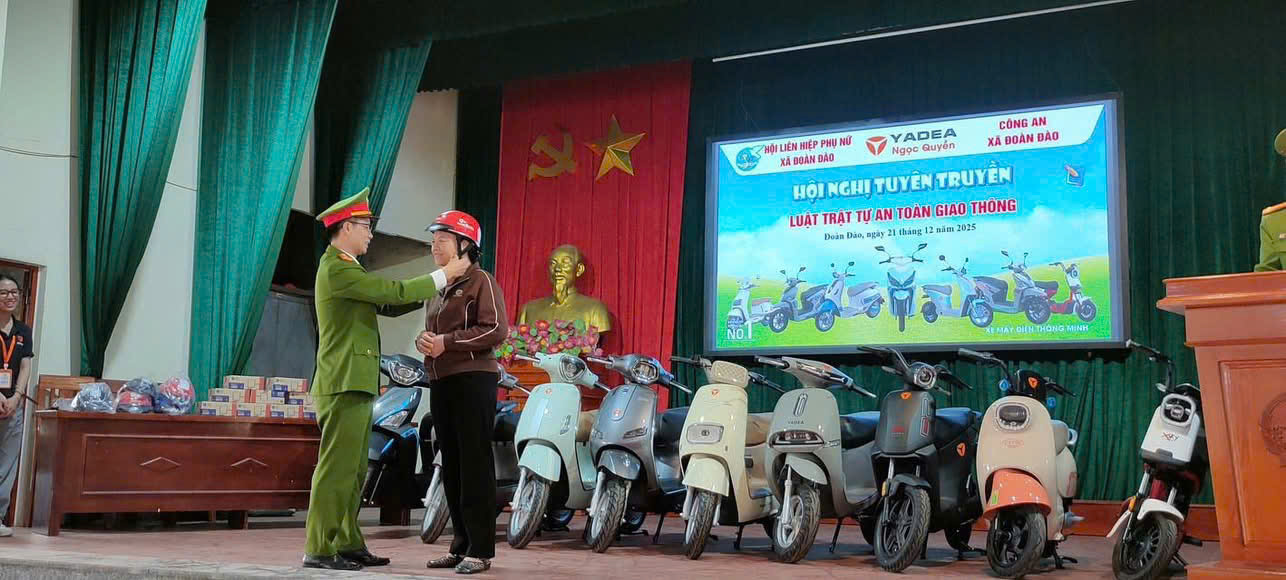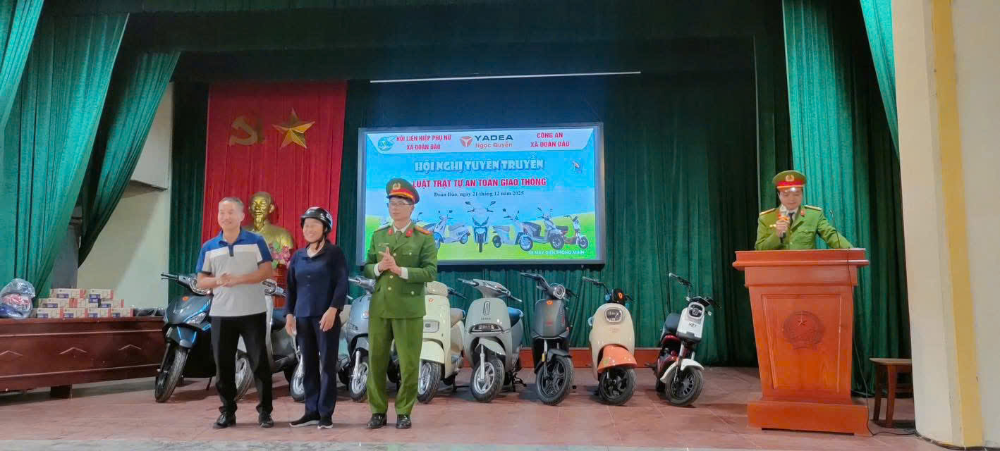 Ngày 21/12/2025, Công an xã Đoàn Đào đã phối hợp với Hội liên hiệp phụ nữ xã và doanh nghiệp buôn bán xe đạp, xe máy điện tổ chức tuyên truyền phổ biến giáo dục pháp luật về an toàn giao thông cho 300 cán bộ, hội viên. Tại buổi tuyên truyền, Công an xã đã phổ biến cho cán bộ, hội viên những nội dung cơ bản của Luật giao thông đường bộ, các quy tắc tham gia giao thông, hình thức và mức xử phạt đối với các nhóm các hành vi vi phạm phổ biến, nhất là việc tham gia giao thông không đội mũ bảo hiểm khi ngồi trên xe mô tô, xe gắn máy, phóng nhanh, vượt ẩu, lạng lách, đánh võng; mức xử phạt, quy phạm pháp luật đối với hành vi giao xe cho người không đủ điều kiện điều khiển phương tiện giao thông… Đồng thời, giao lưu, hỏi - đáp, tặng quà đối với những câu trả lời đúng để nội dung buổi tuyên truyền được phong phú, vui tươi, phấn khởi và đạt hiệu quả cao.