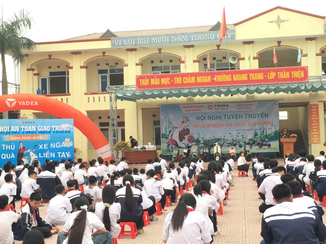 Buổi tuyên truyền được tổ chức trong không khí thân thiện, cởi mở và đầy hứng khởi, với nhiều hình thức truyền đạt sinh động như giao lưu hỏi - đáp, xử lý tình huống thực tế và trao đổi trực tiếp giữa lực lượng Công an xã với các em học sinh. Những phần trả lời đúng, tích cực đã được Ban tổ chức ghi nhận bằng những phần quà ý nghĩa, góp phần tạo thêm sự hào hứng cho các em khi tham gia. Thông qua các hoạt động này, nội dung tuyên truyền không chỉ trở nên gần gũi, dễ tiếp thu mà còn giúp học sinh từng bước nâng cao nhận thức, hình thành ý thức trách nhiệm trong việc xây dựng môi trường học đường an toàn, lành mạnh, đoàn kết và nói không với bạo lực.